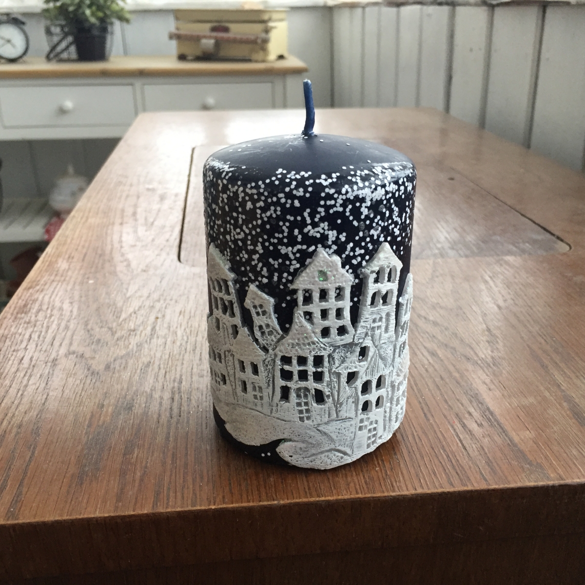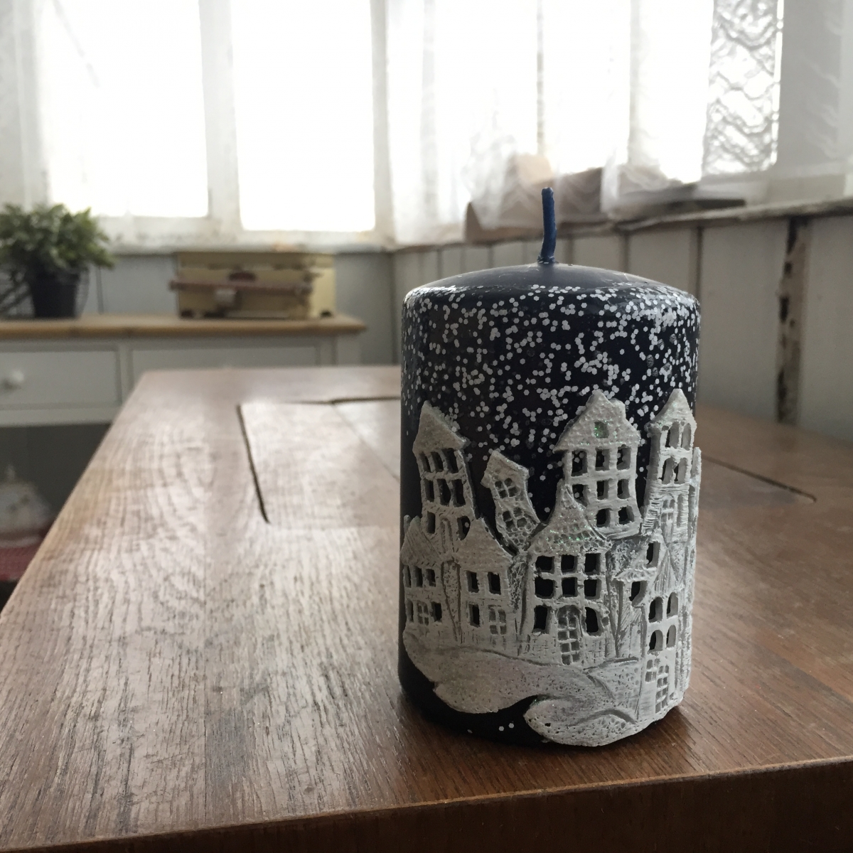Sviečka vianočný čas valec modrý 7x10cm