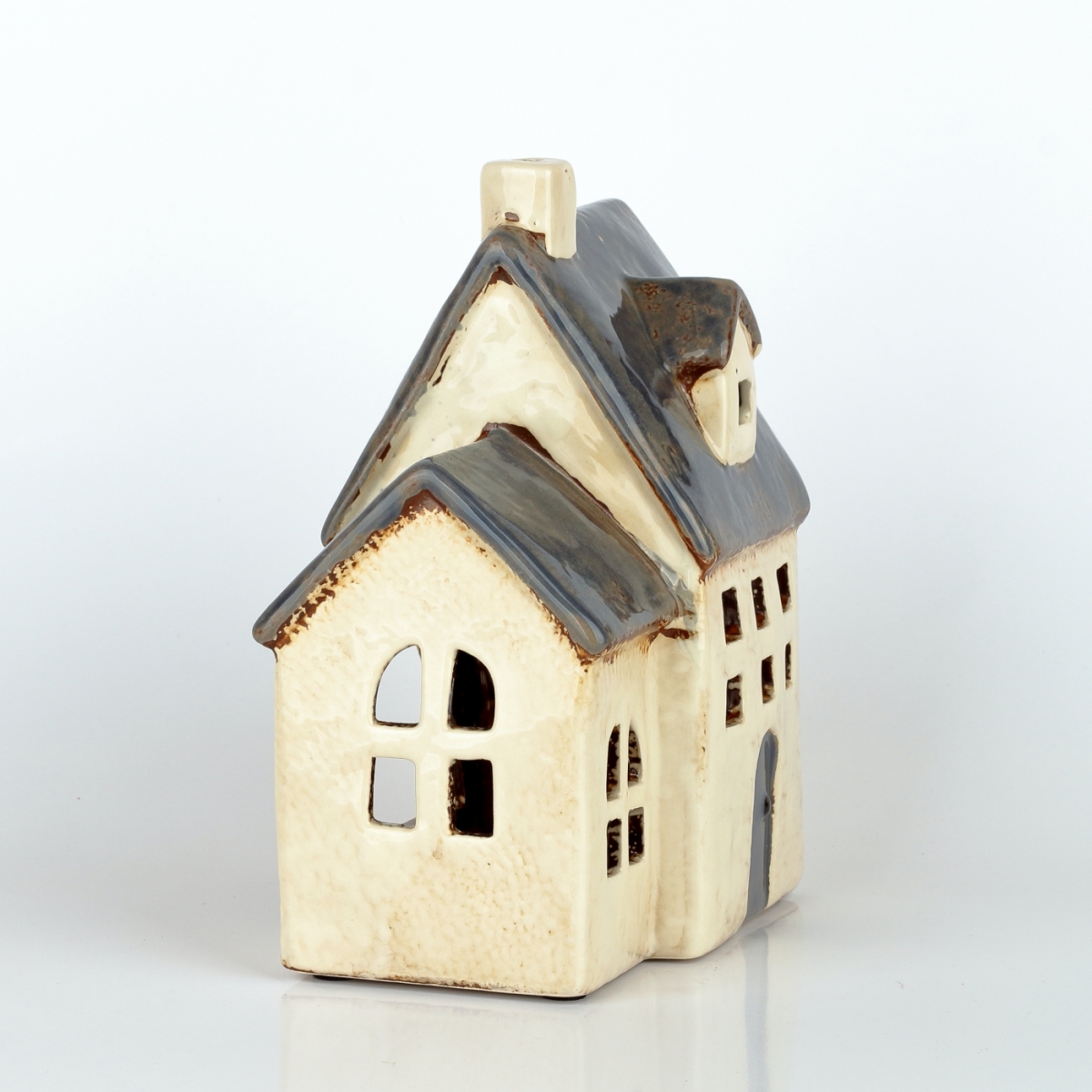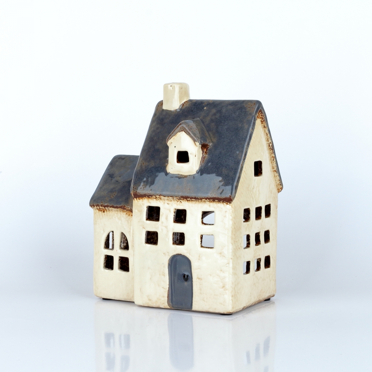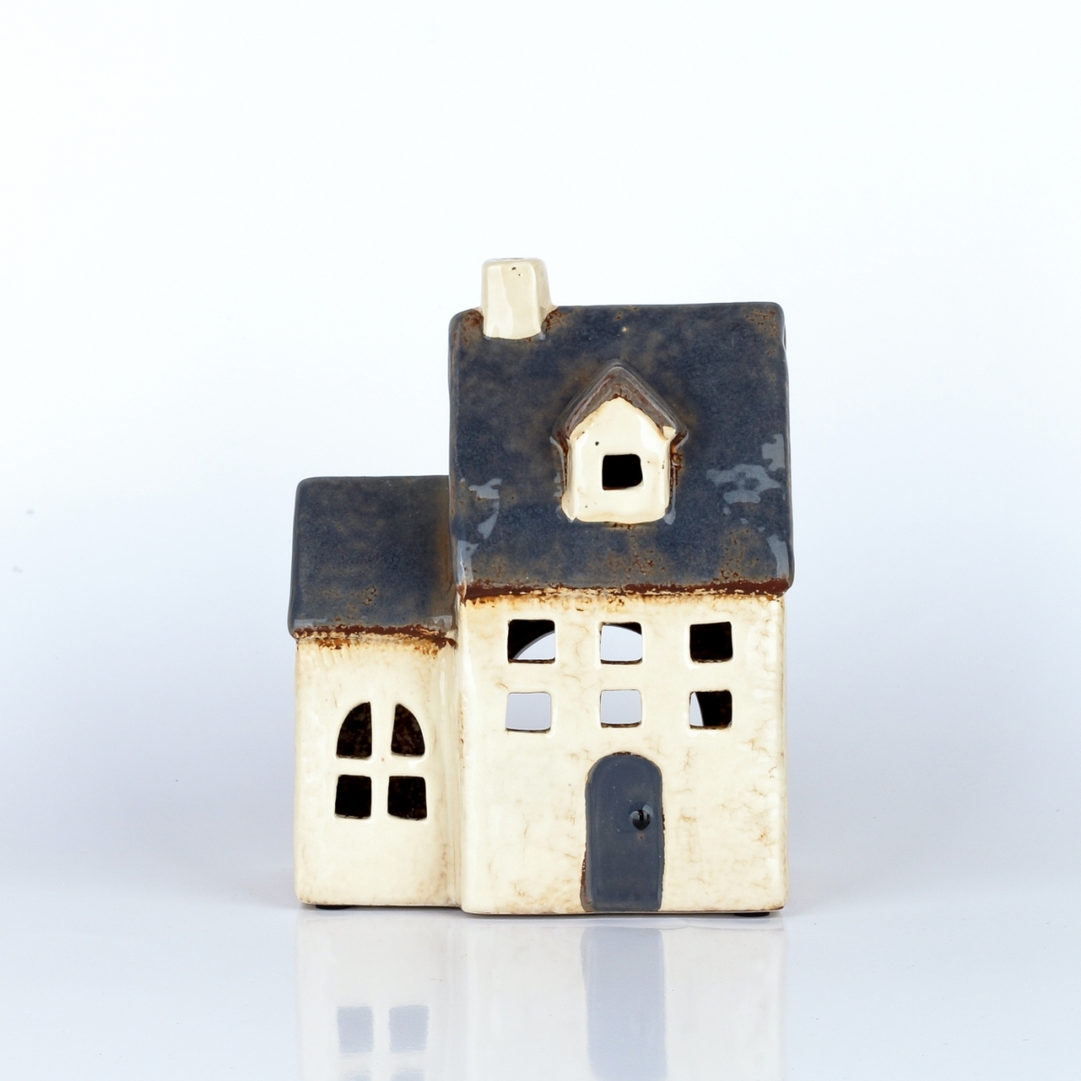 Svietiaci domček s prístavkom krémový, modrá strecha