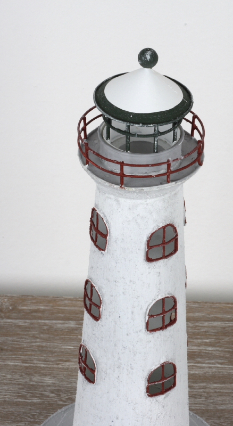 Svietnik biely maják 38,5cm je ručne maľovaný a kompletne zmontovaný. Čaká tak len na to, až sa vydá na cestu k vám a doplní tak vašu zbierku námorných dekorácií.