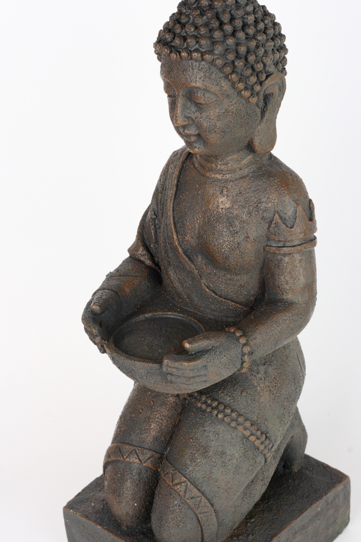kľačiaci Buddha držiaci v ruke misku na čajovú sviečku je krásnou kombináciou svietnika a sošky.