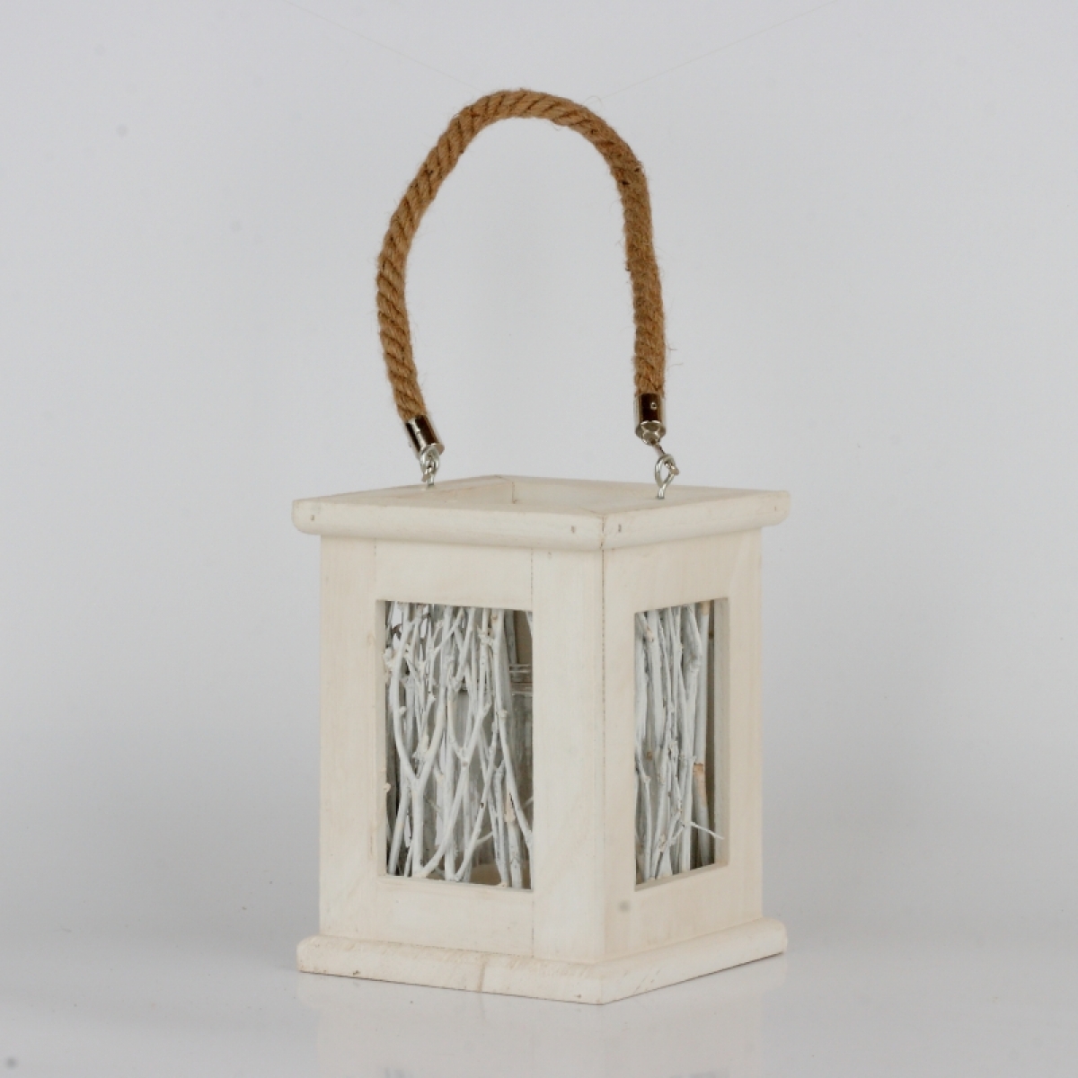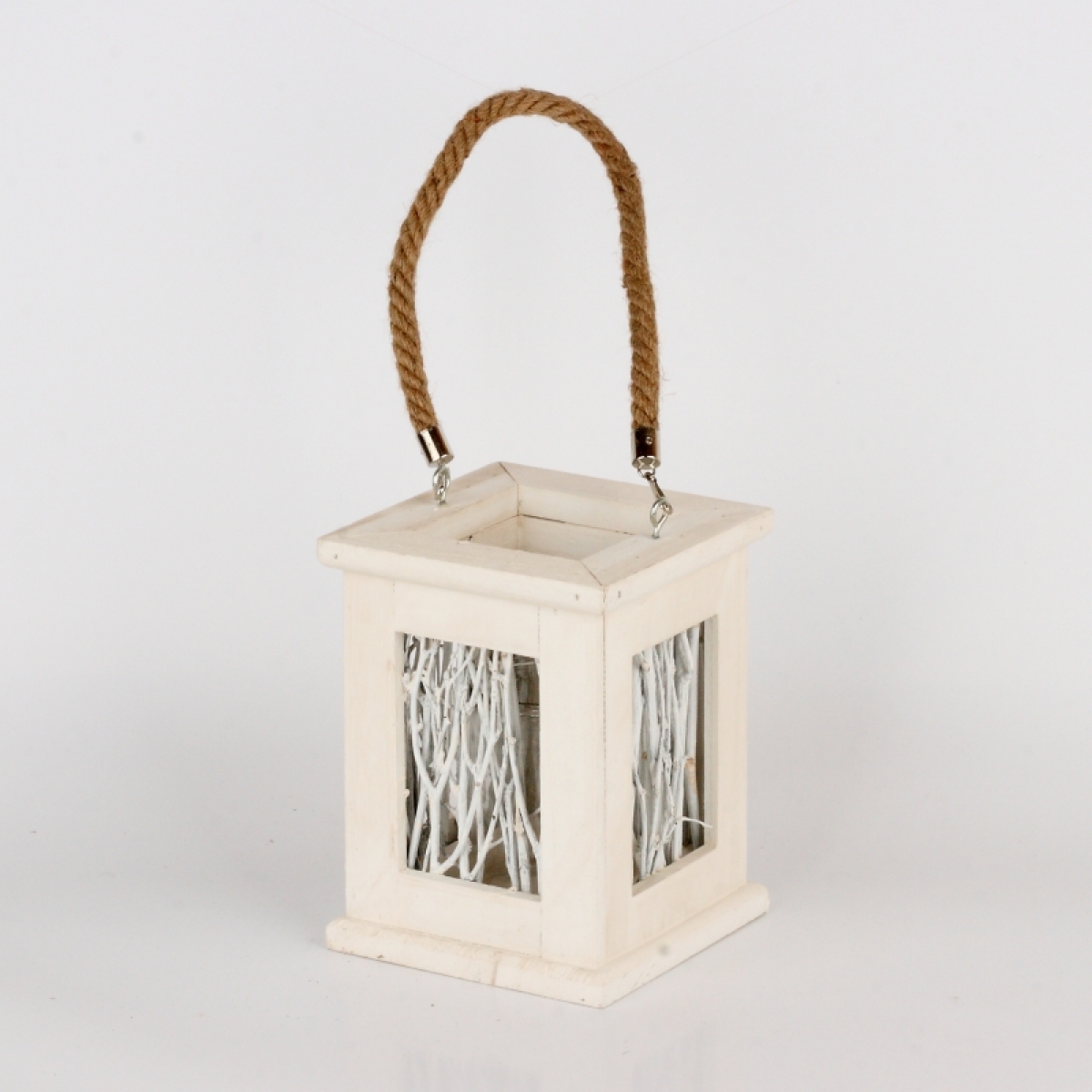 Svietnik drevený s vetvičkami biely 14x18x14cm