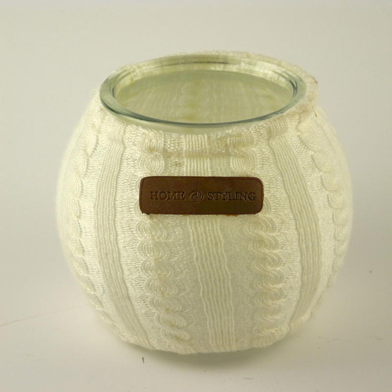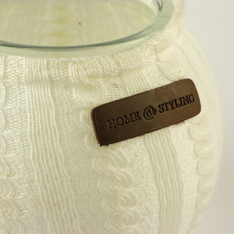 Pletený, vlněný návlek na kalíšek, lze čistit jako běžné textílie a pletené materiály. Na návleku je designová kožená značka HOME STYLING.