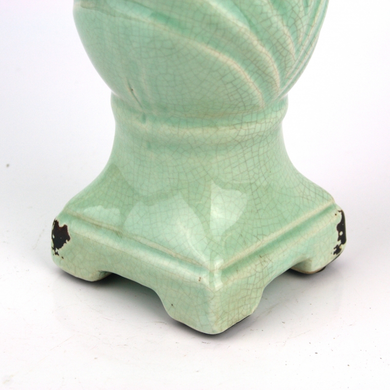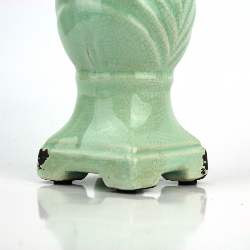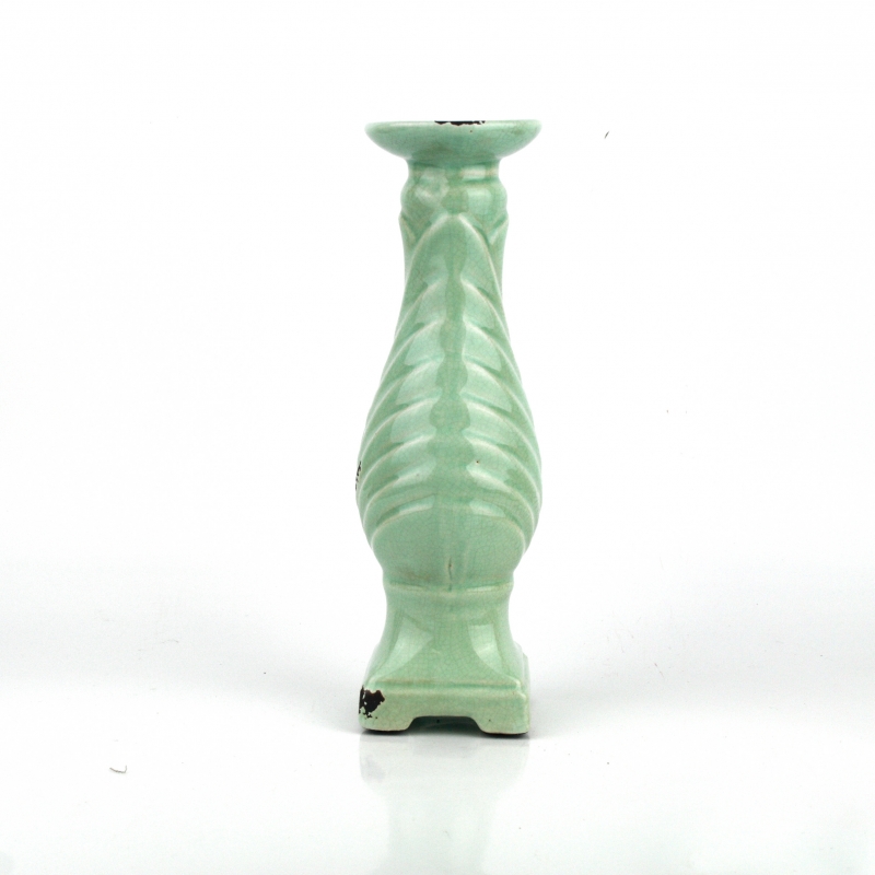 Svietnik má krásnu zelenkavá farbu s jemnou bielou a čiernou patinou. Pôsobí na nás dojmom, že už máš odpracovaných pekných pár rokov.