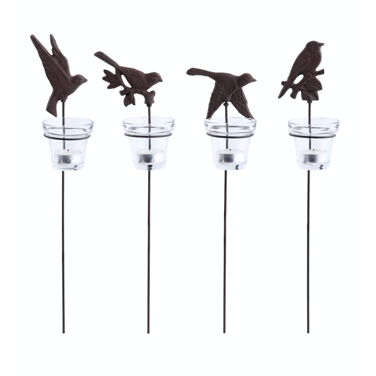 Hoci vtáky obvykle prinášajú do záhrady radosť svojim spevom, tieto vtáky poskytujú atmosférický zážitok. Sklenená dóza chráni čajovú sviečku pred vetrom. Tieto dekoratívne liatinové vtáčiky sú individuálne ručne odliate podľa dlhoročnej tradície a remesla.