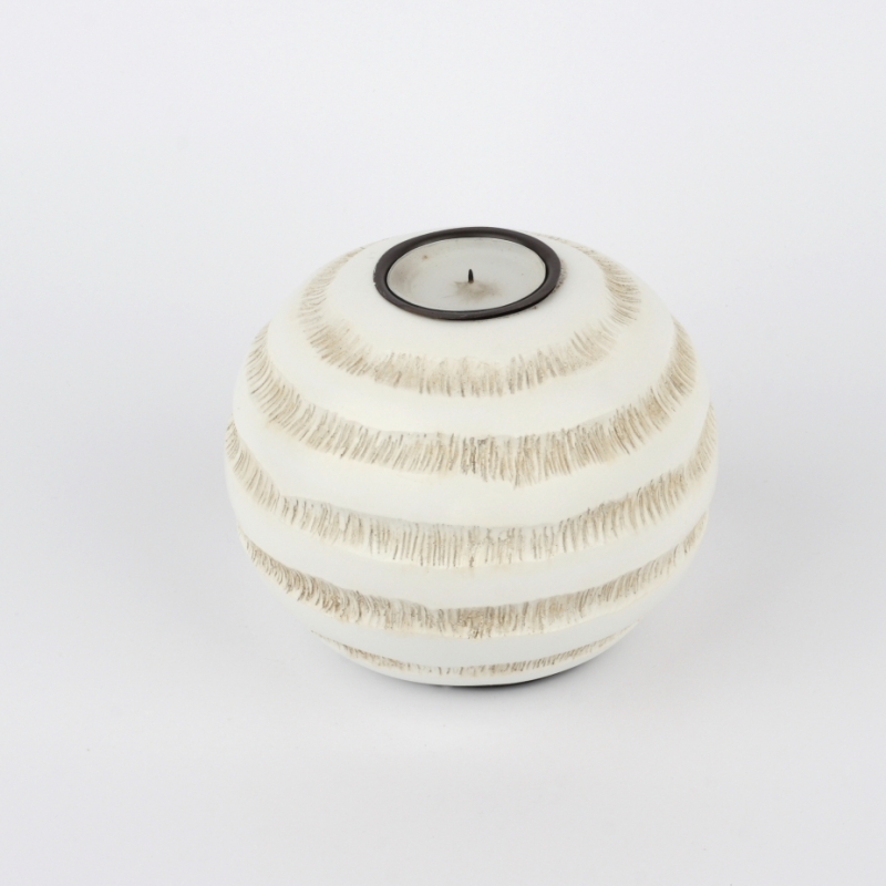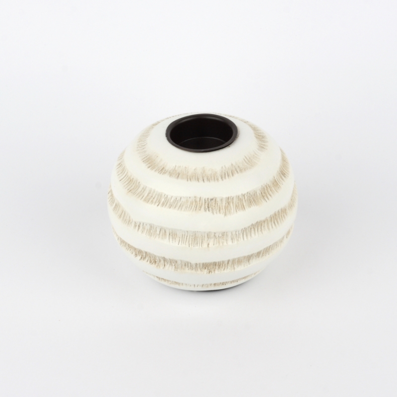 Svietnik v tavru guľa má ozdobné pruhy připomínjaící rytie do dreva.