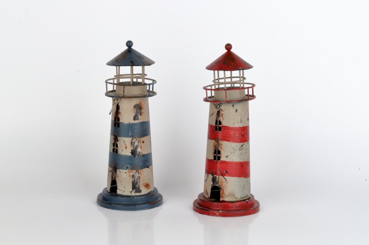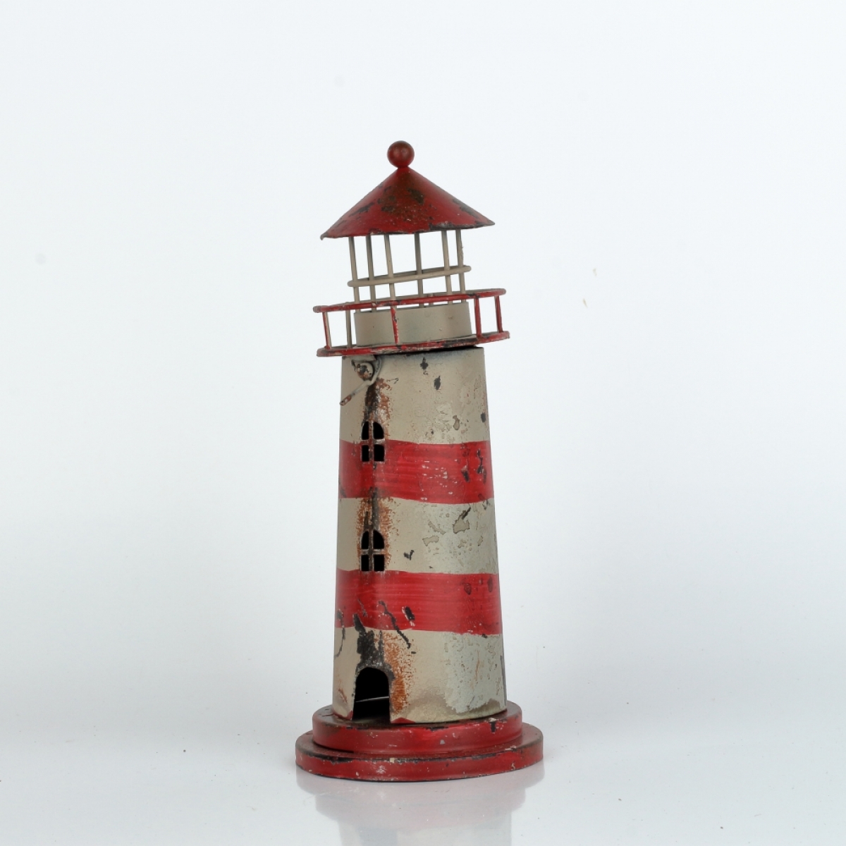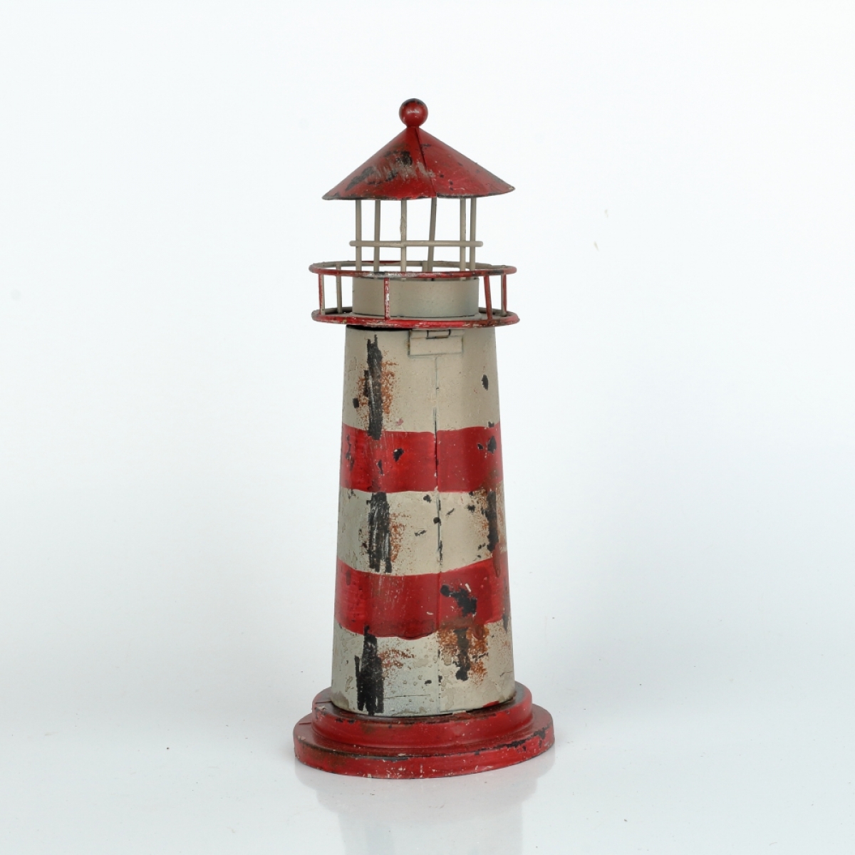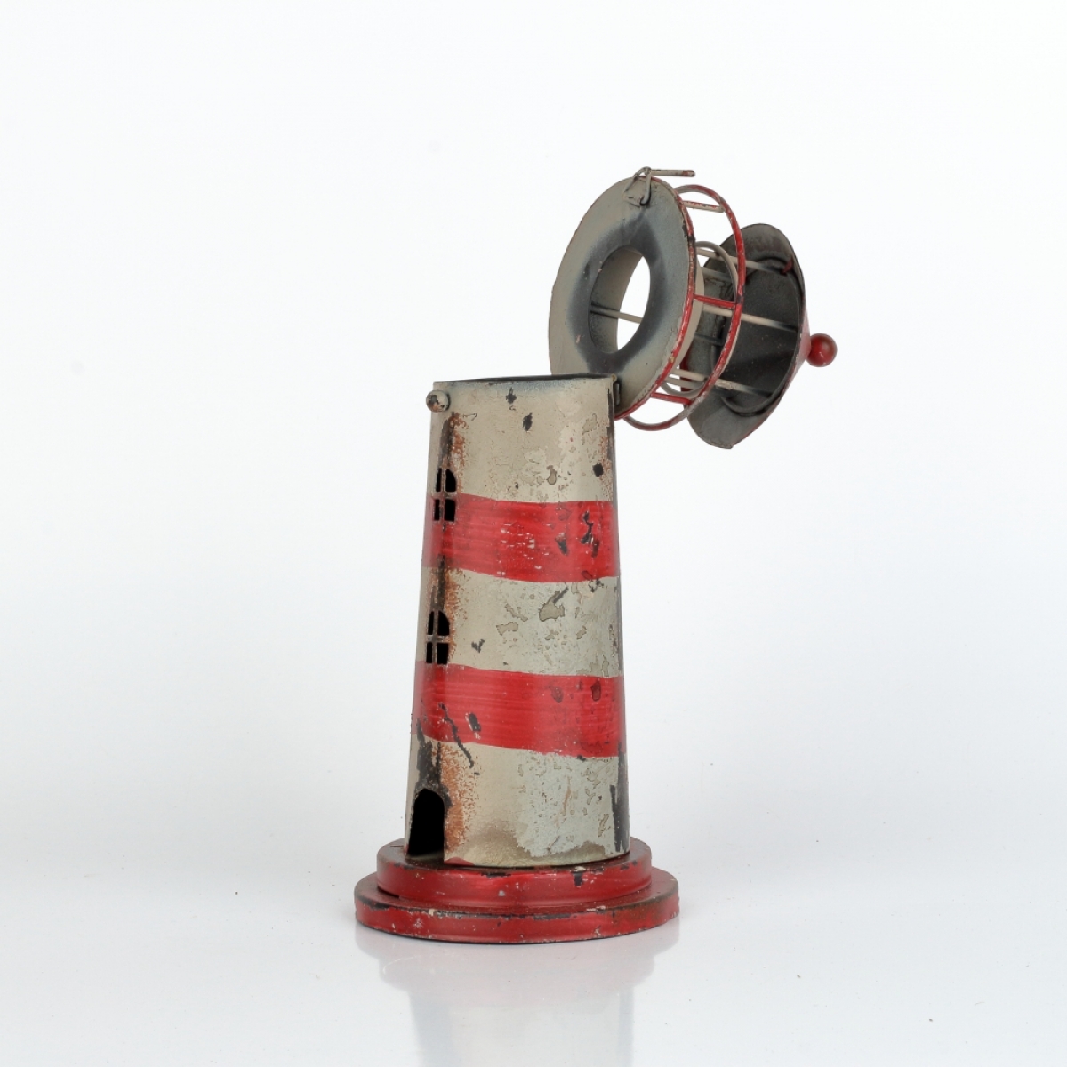 Plechový svietnik v tvare majáka má odklápací striešku, kam vložíte čajovú sviečku a po zapálení bude maják krásne svietiť.