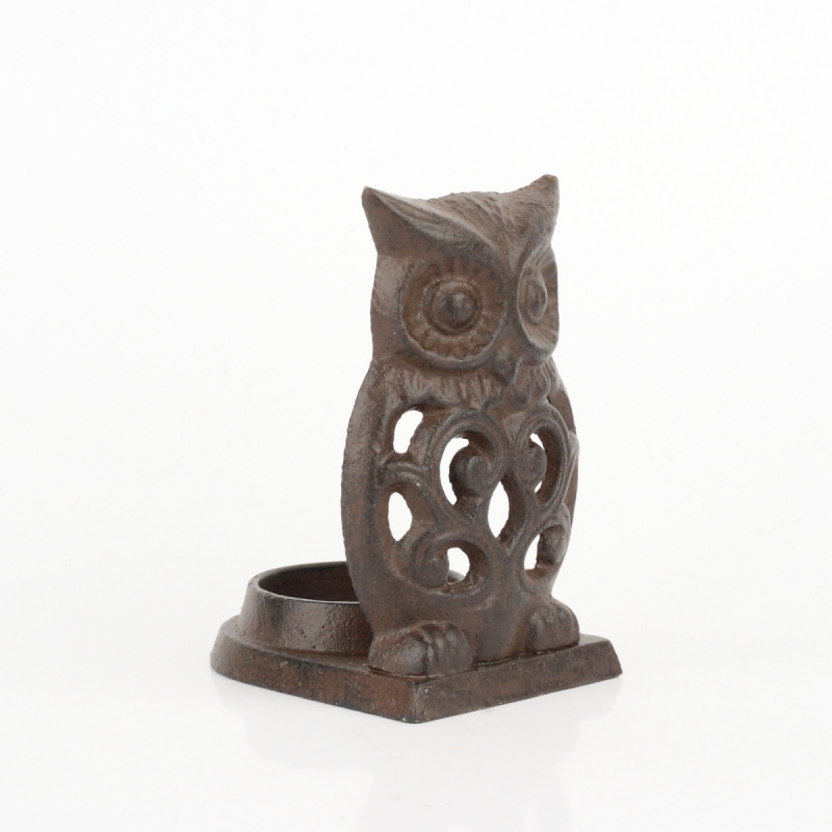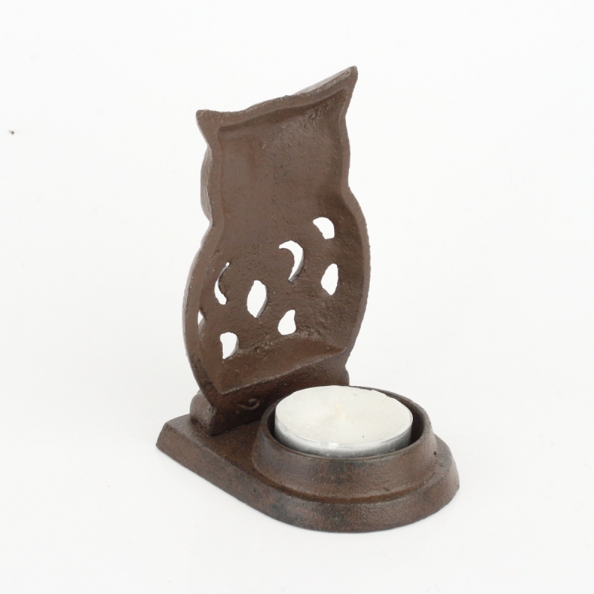 Svietnik na čajovú sviečku sova 6,5x8x11cm je z kvalitnej odolnej liatiny,