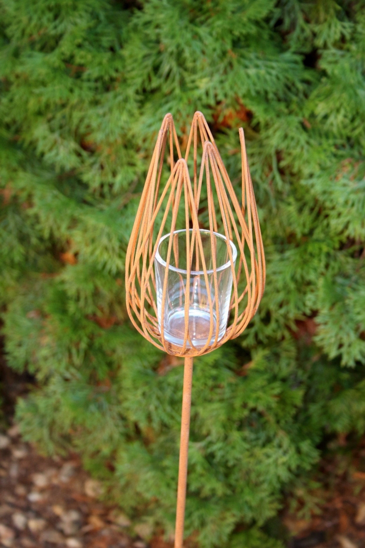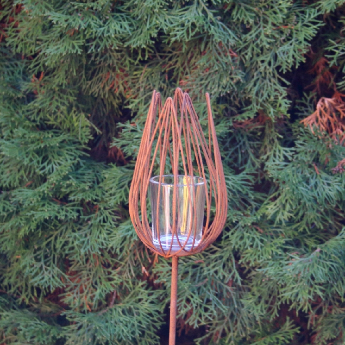 Materiál: kov, skleněný kalíšek na čajovou svíčku