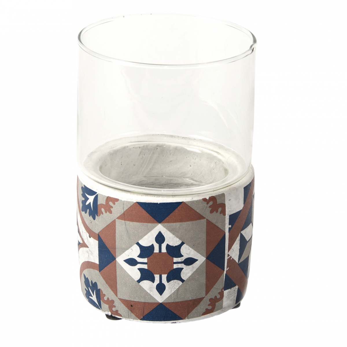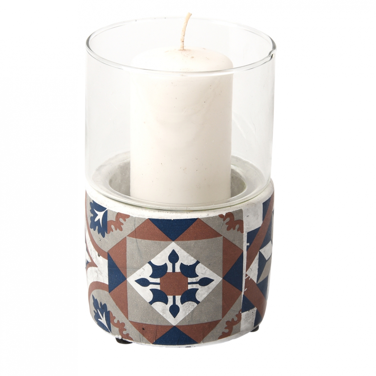 Svietnik, s krásnym dekorom inšpirovaným portugalskými dlaždicami, je vybavený skleneným tienidlom, ktoré slúžia ako ochrana pred sfúknutím. Preto je tento svietnik vhodný aj na vonkajšie použitie.