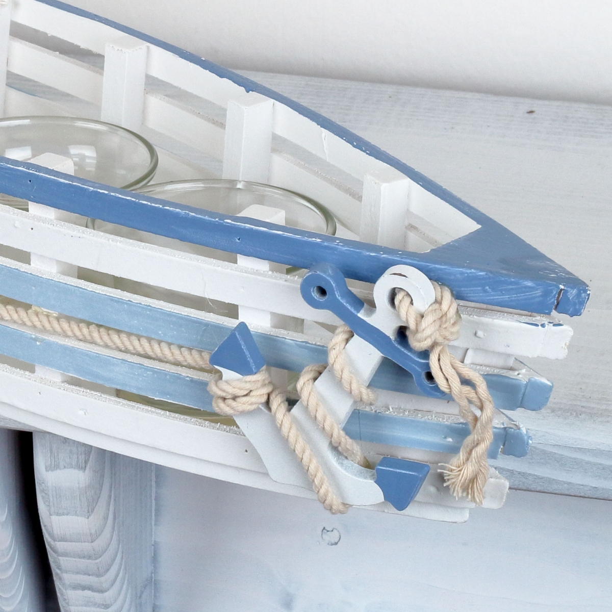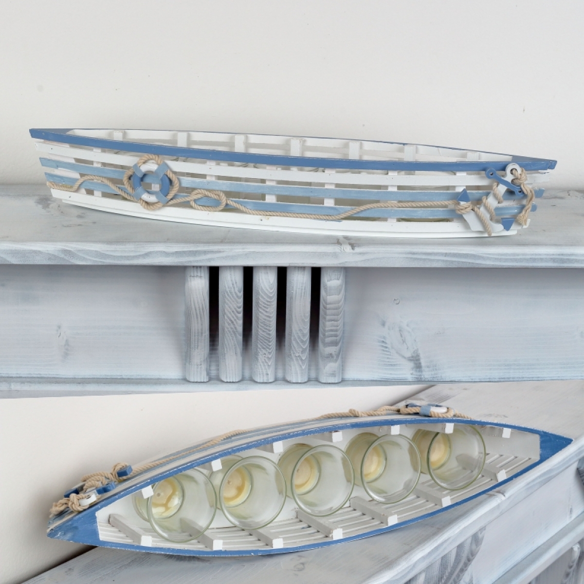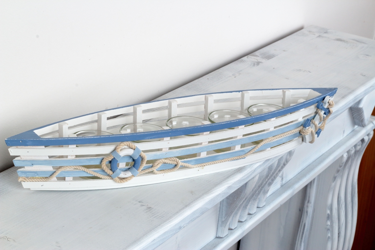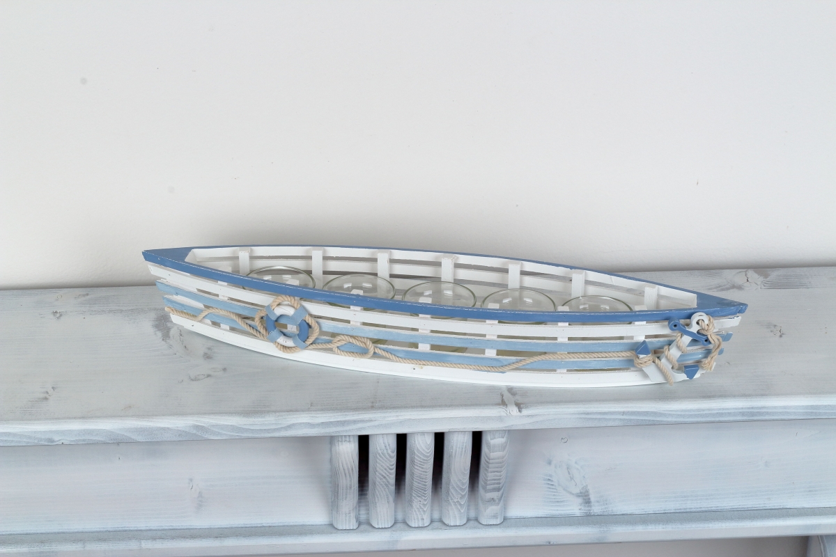 Svietnik v tvare loďky 52x10x8cm na tri čajové sviečky.