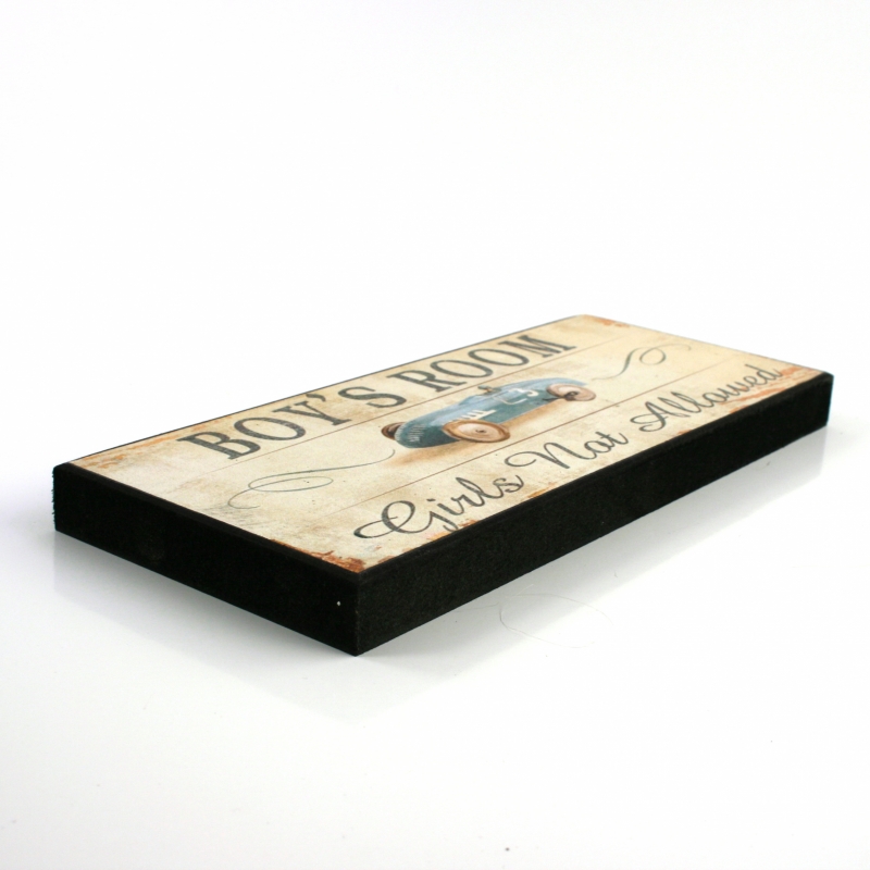 Drevená tabuľka má rozmer 25 x 10 x 1,5 cm a je na zadnej strane opatrená dvoma otvormi pre ľahké zavesenie .