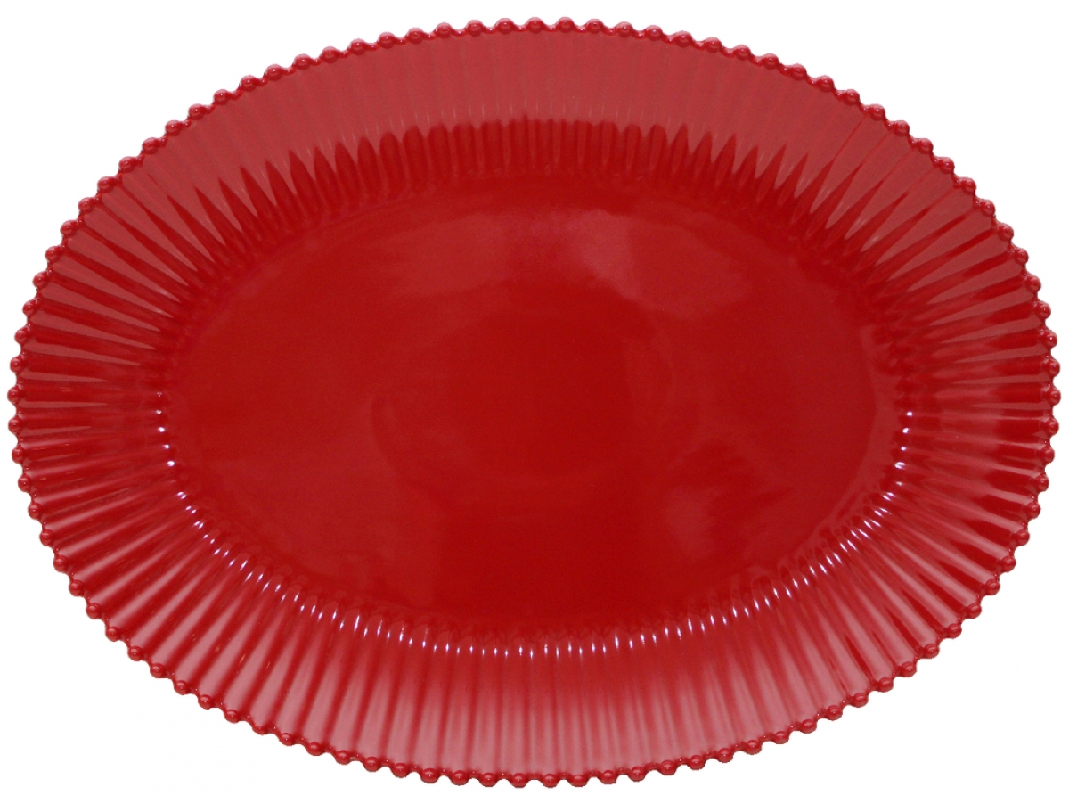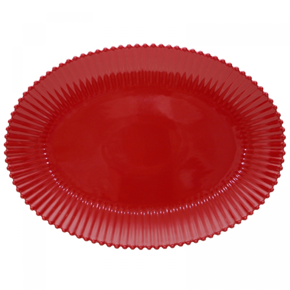 Krásna rubínová tácka, oválneho tvaru, je vďaka svojmu veľkorysému rozmeru vhodná na servírovanie obeda i slávnostné večere. Úžasne na ňom však vyniknú napríklad aj chlebíčky na narodeninovej, či silvestrovskej oslave. Zaujme nielen svojou výraznou farbou, ale aj originálnym dizajnom v podobe drobných „perličiek“, lemujúcich jeho okraj, ktoré sú typické pre kolekciu Pearl od portugalskej firmy COSTA NOVA.