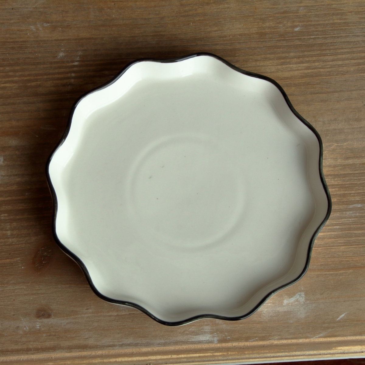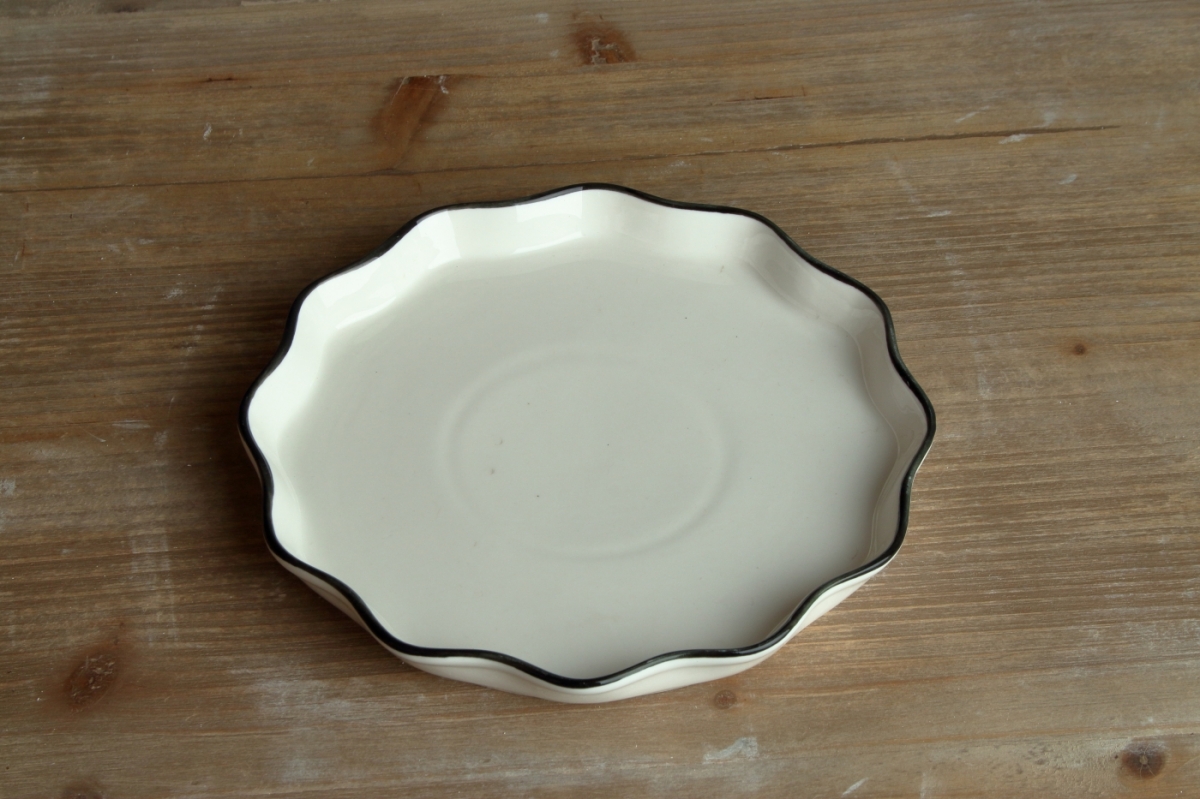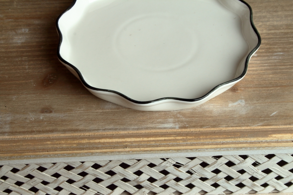Chýba vám originálne riad, ktorým by ste oživili slávnostný stôl? Potom je tento krásny tanier so zvlneným okrajom ideálnou voľbou! Kombinácia bielej farby s tmavým okrajom z neho navyše robí štýlový kúsok do kuchyne.