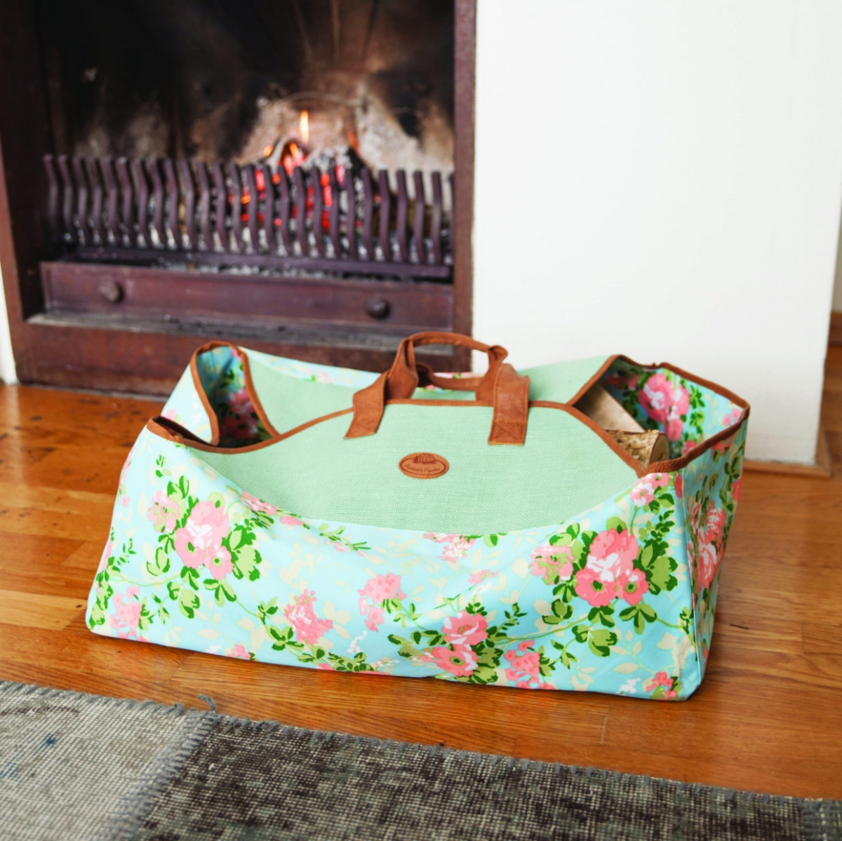 Spodní část této tašky na dřevo je vyrobena z pevného plátna a horní z juty. Lemování a ucha jsou z odolné koženky, která ještě zvyšuje pevnost tašky.