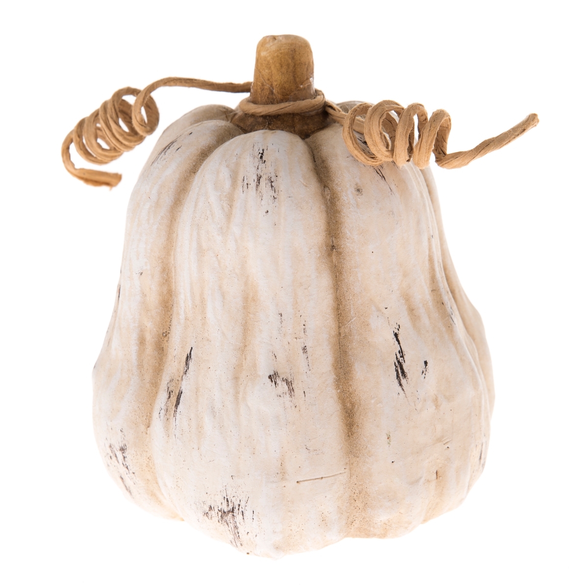 Tekvica dekorácia v bielom farebné prevedenie s krémovou patinou je vyrobená z keramiky. Na dekoračné účely ju teda môžete použiť opakovane.