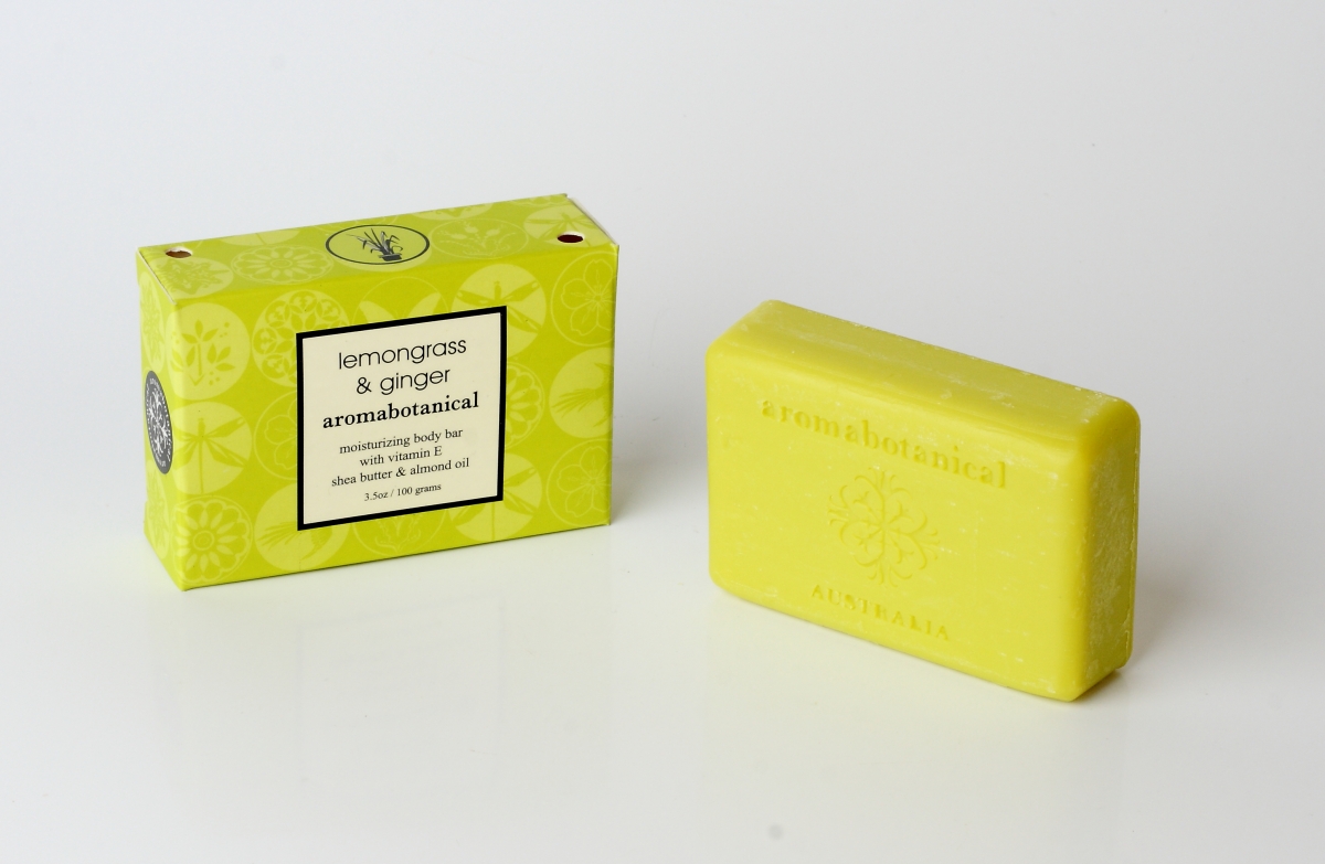 Telové mydlo Aromabotanická citrónová tráva / zázvor 100g s vitamínom E, bambuckým maslom a mandľovým olejom rozmazne pokožku s každým dotykom