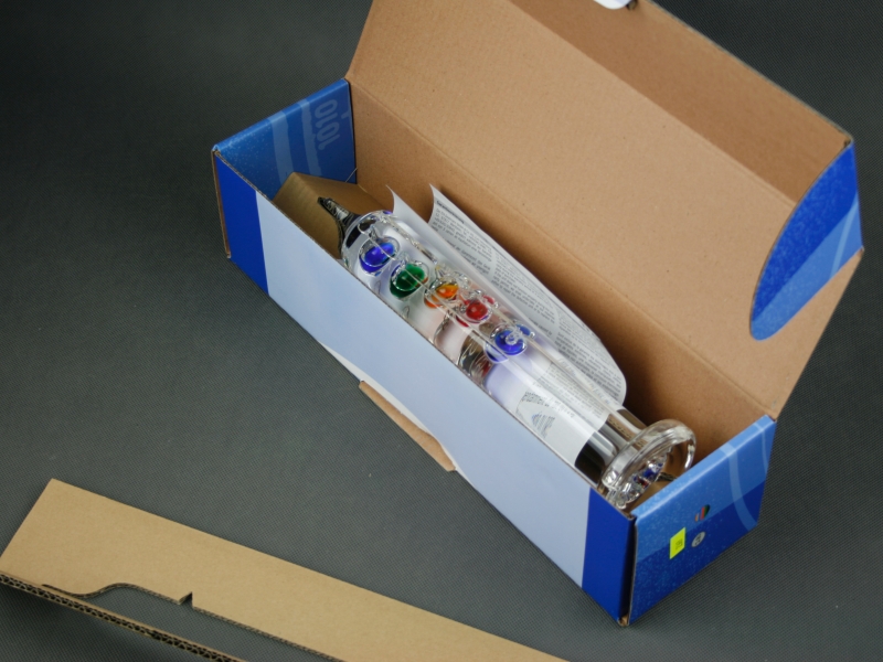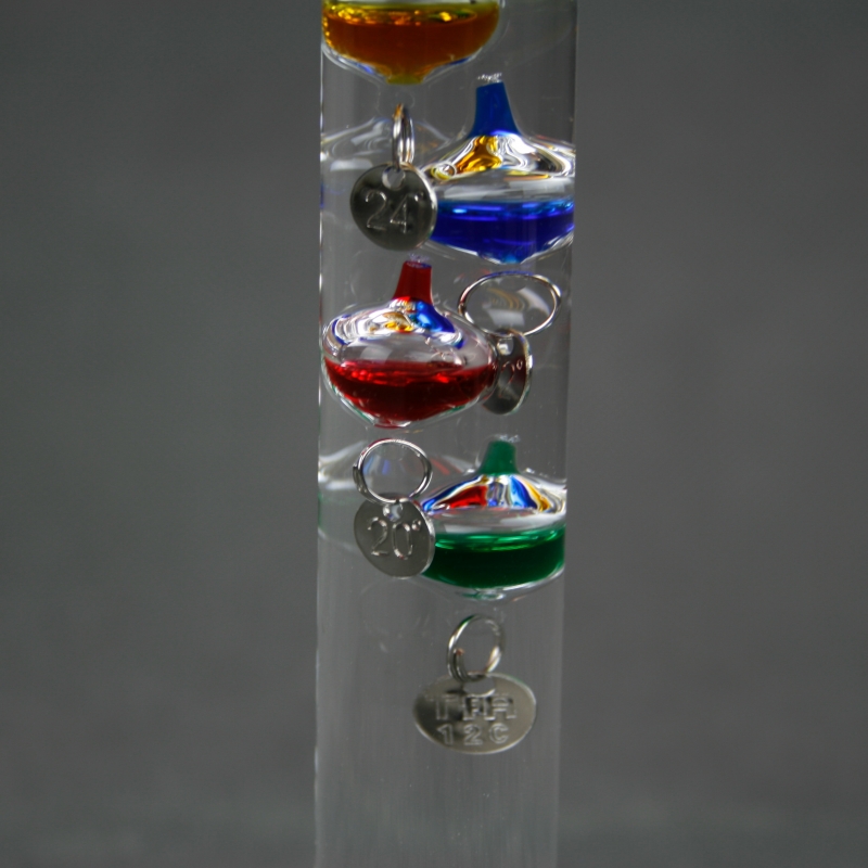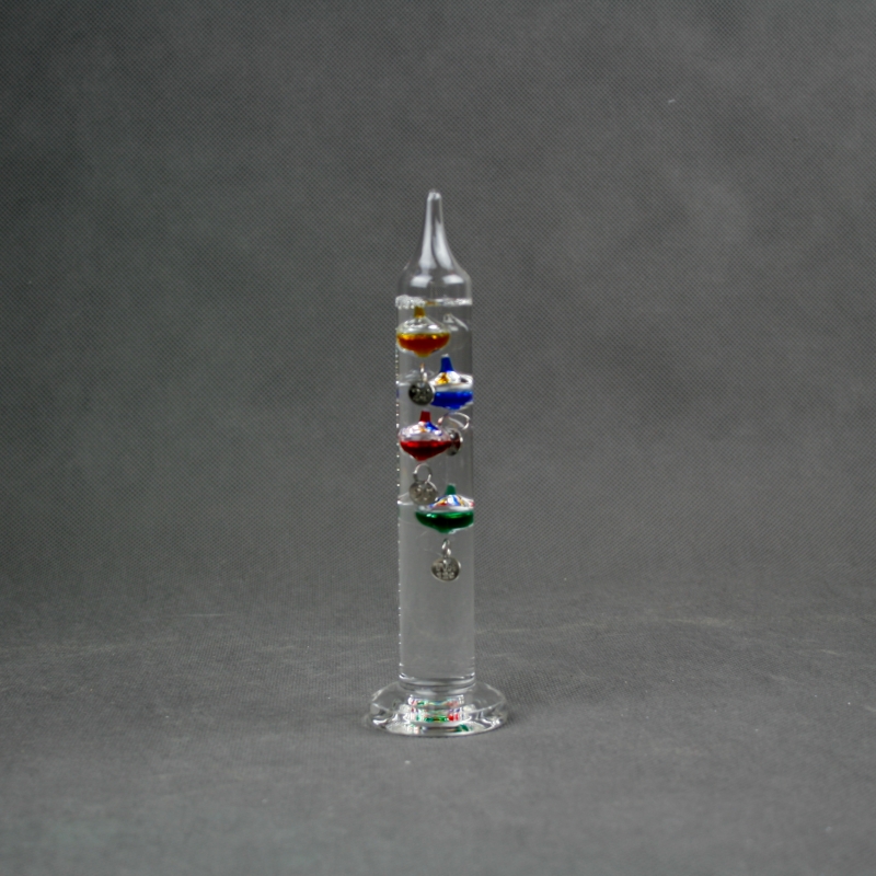 Teplomer Galileo-Galilei malý bol zhotovený podľa návodu Galileo Galilei (1564-1642). Geniálny Galileo Galilei objavil pri výskume merania teploty túto metódu: do valca naplneného tekutinou vložil 4-5 presne zvážených guličiek, ktoré potom podľa teploty v tekutine klesali alebo stúpali. Tým dostal údaje o teplote.