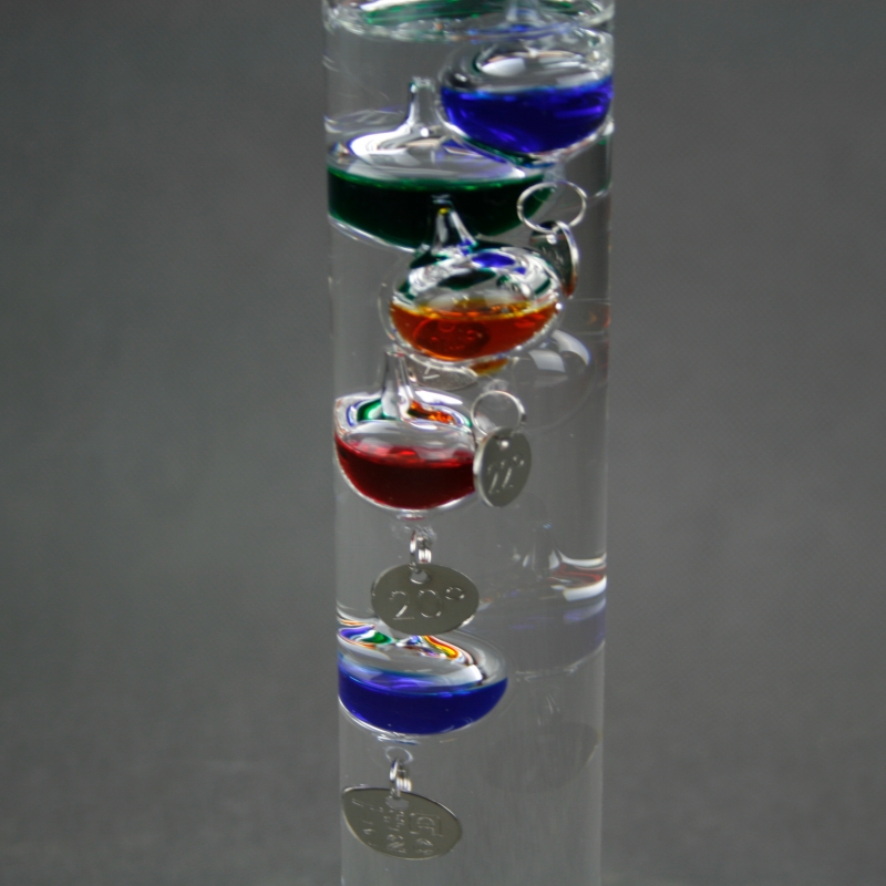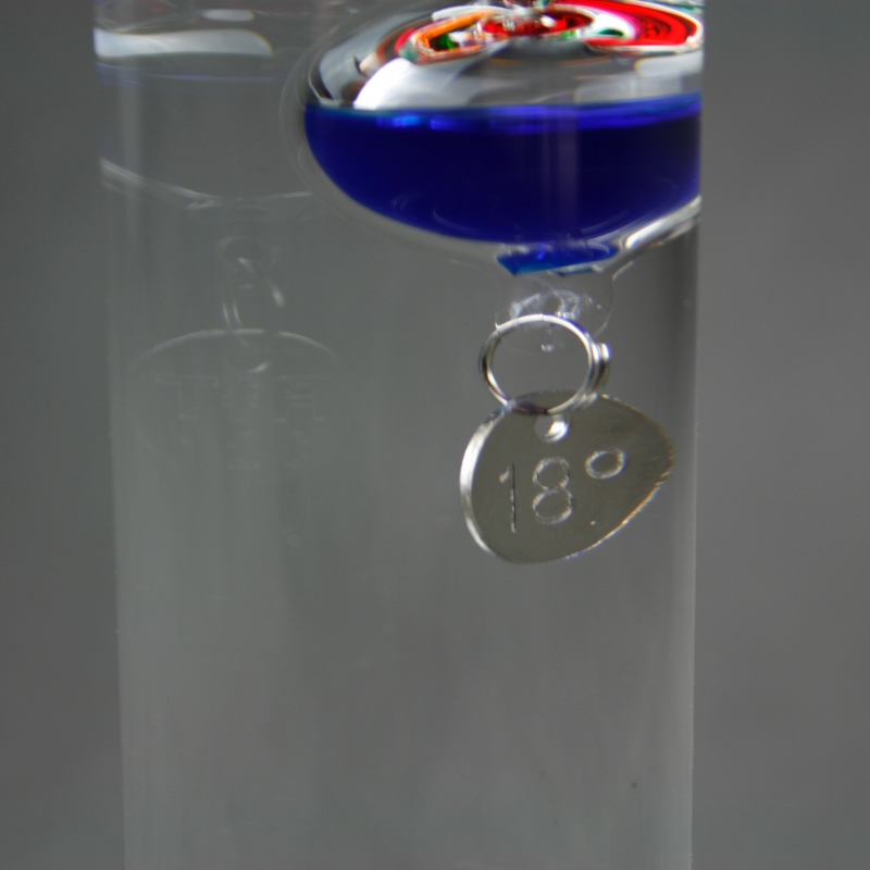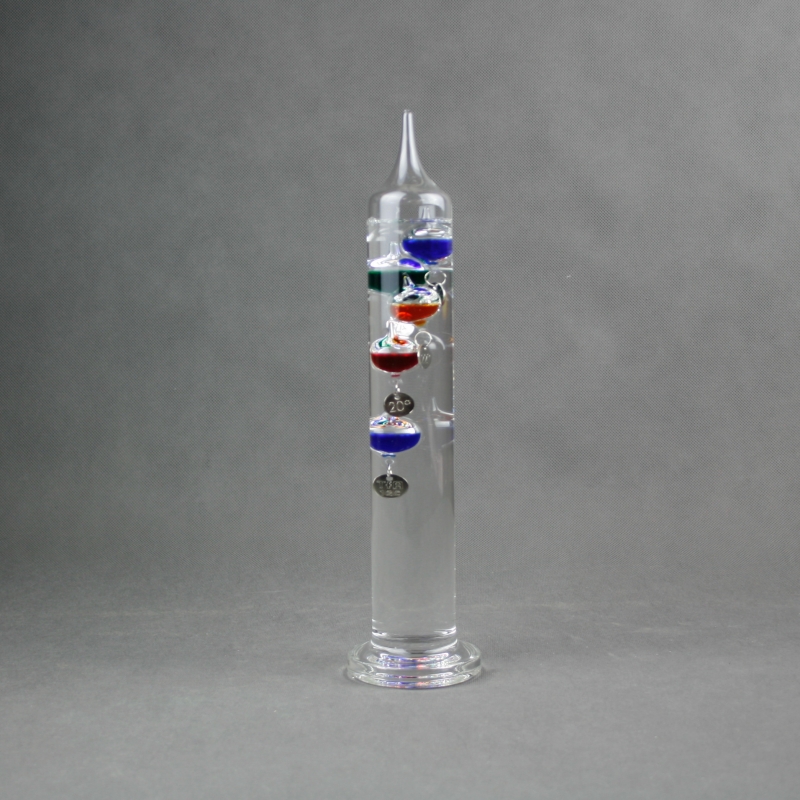 Teplomer Galileo-Galilei veľký bol zhotovený podľa návodu Galileo Galilei (1564-1642). Geniálny Galileo Galilei objavil pri výskume merania teploty túto metódu: do valca naplneného tekutinou vložil 4-5 presne zvážených guličiek, ktoré potom podľa teploty v tekutine klesali alebo stúpali. Tým dostal údaje o teplote.