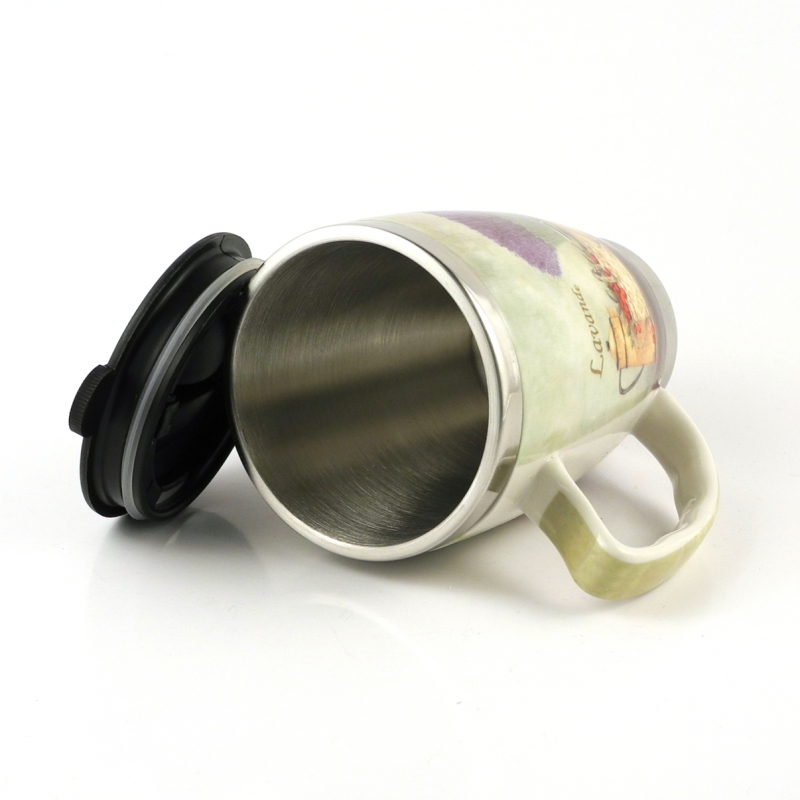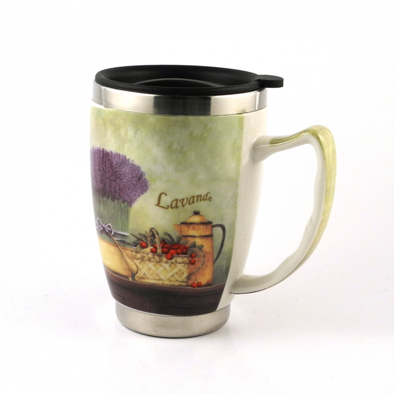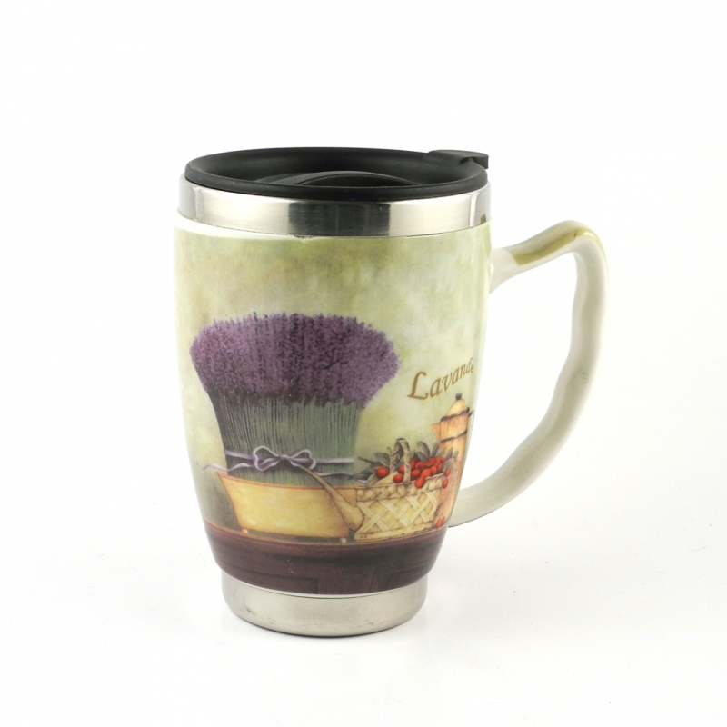 Termohrnek . Materiál: keramika, plast, kov Objem: 300ml nápoje