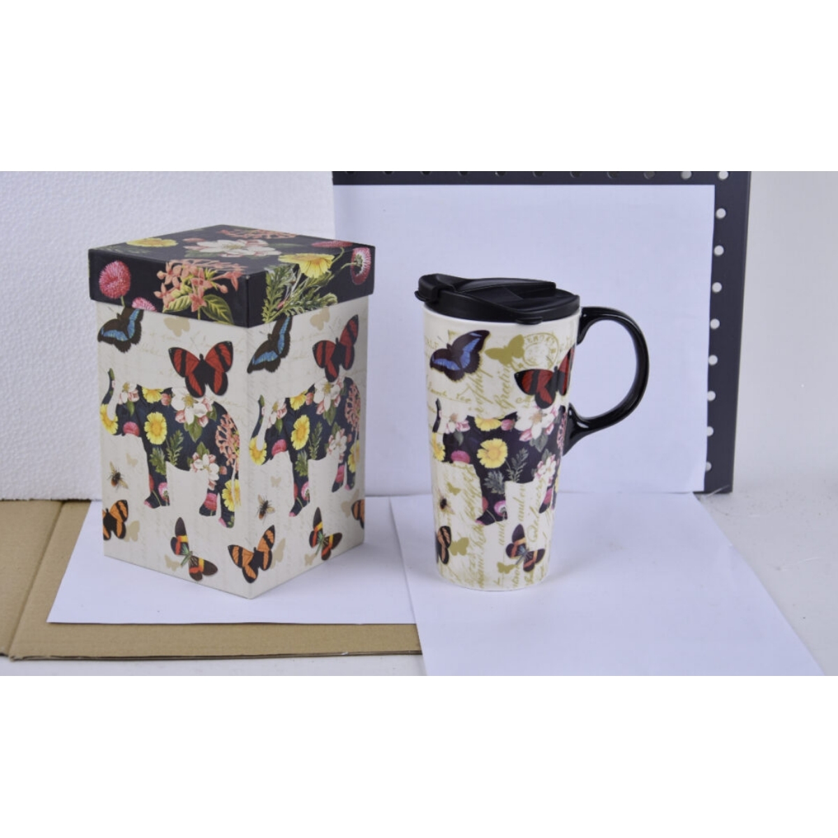 Termohrnček na kávu je skutočným skvostom medzi všetkými termohrnčekmi z našej ponuky. Pri pohľade na jeho pestrofarebnú potlač s motýlikmi a slonom vám srdce zajasá.