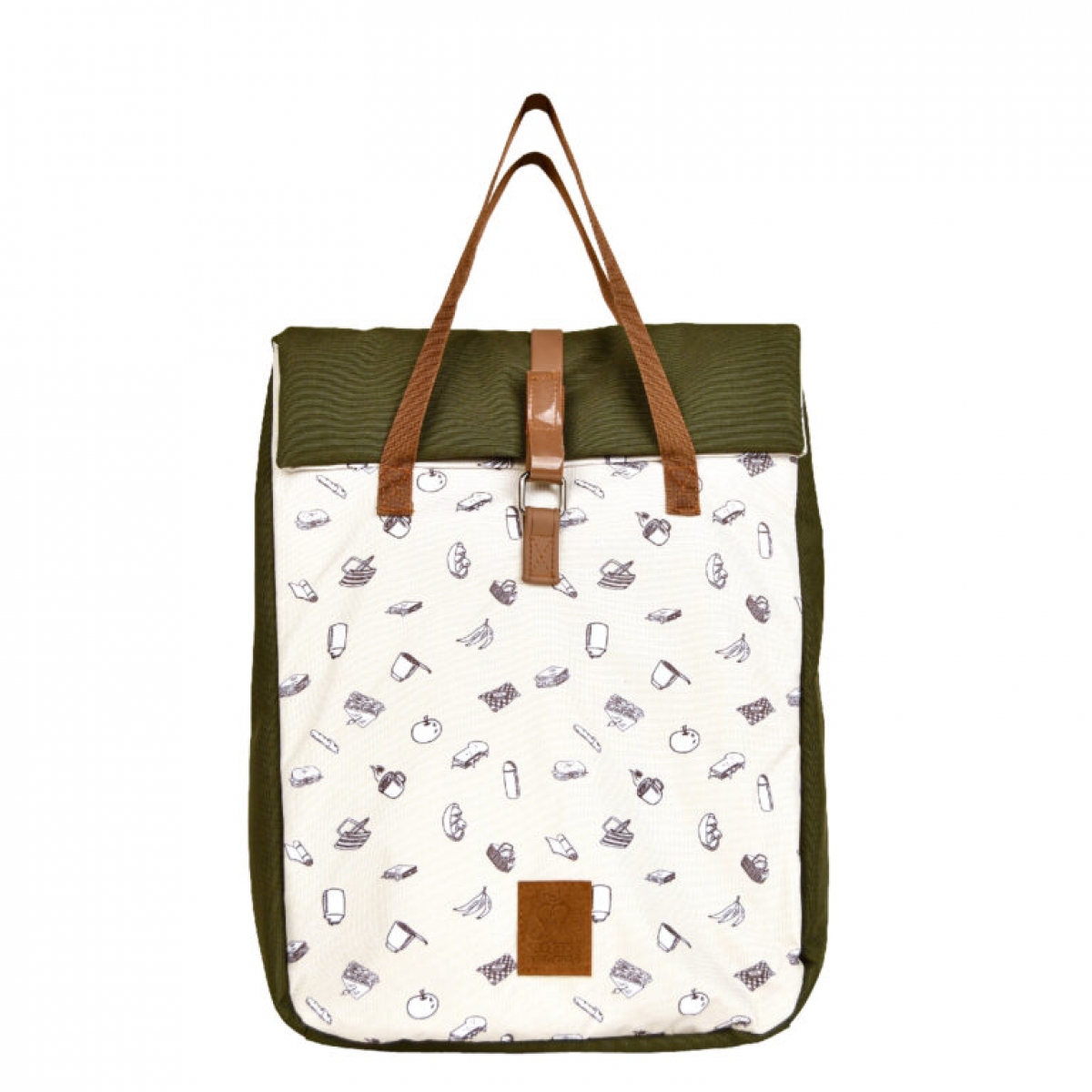 Táto elegantná termotaška v prírodných farbách, zaujme najmä svojím predným dielom, ktorý je z bielej textílie s obrázkovou potlačou.