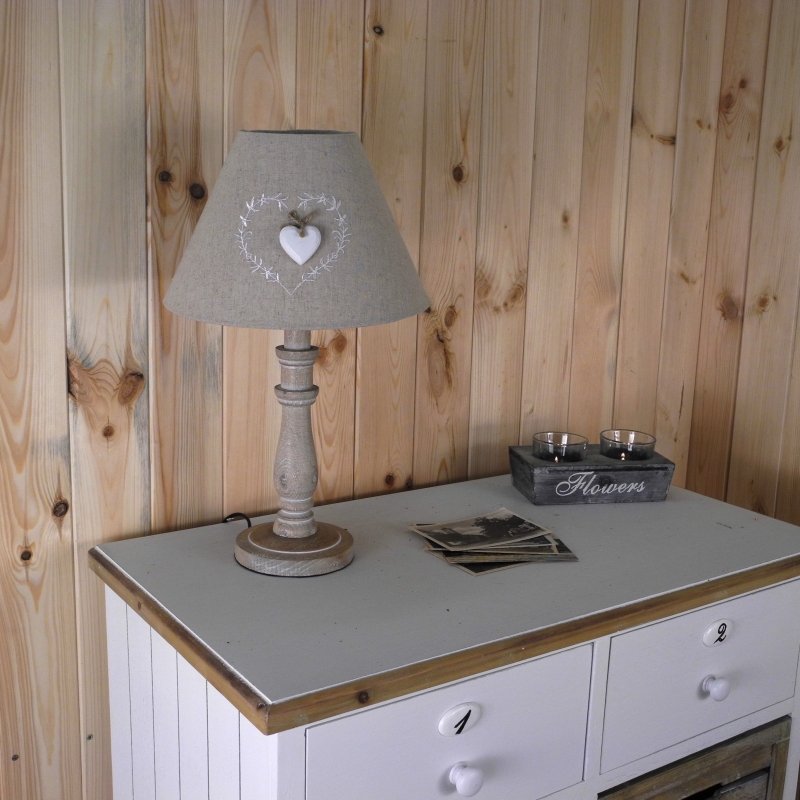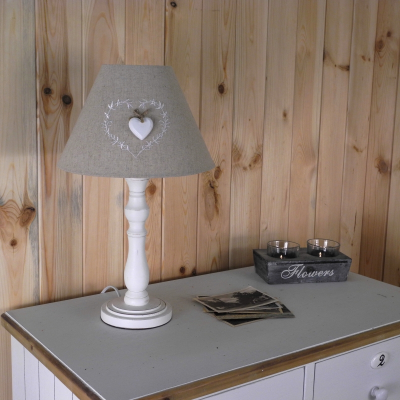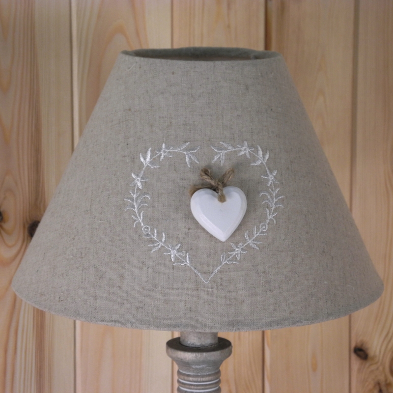 Tienidlo je vyrobené z prírodnej tkaniny a je pekne ozdobené motívom srdca, ktorý je jednak vyšitý, jednak zavesený ako prívesok. Vďaka dekoru bude lampa ideálne pre trávenie romantických večerov v dvoch, môže sa stať aj zaujímavým a neobvyklým darčekom.