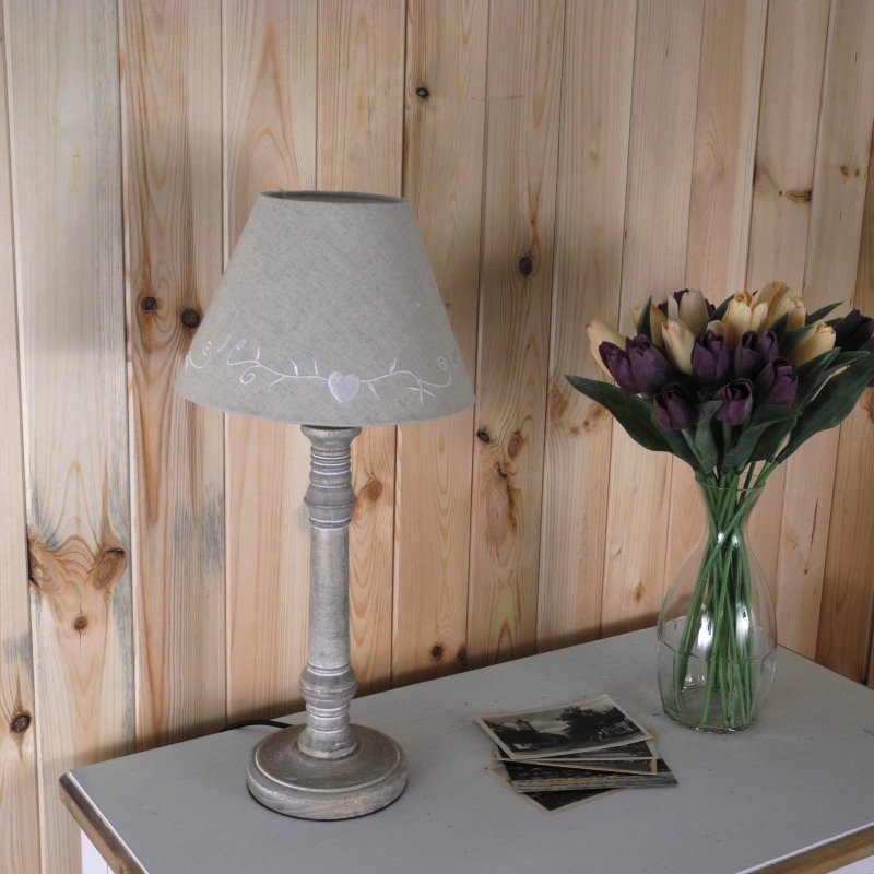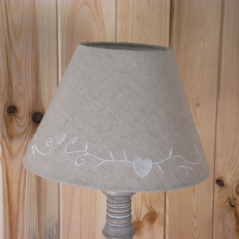 Okolo celého tienidlá sa vinie jemný bielo vyšívaný opasok zdobený srdiečkami.Cena, ktorá je uvedená , patrí iba k tienidlo. Príslušnú nohu si môžete vybrať v položkách dek1815 - 1818.