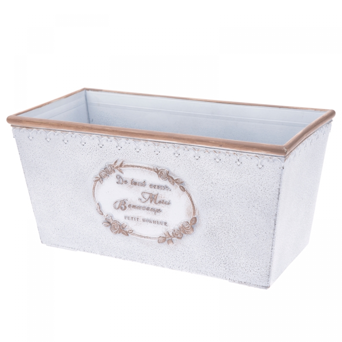Záhradný truhlík má na prvý pohľad vzhľad klasického plechového truhlíka s patinou, je ale z plastu, takže vám časom rozhodne nezrezne! Krásny vintage štýl ladený do bielej farby sa bude hodiť do každého interiéru aj von na záhradu.