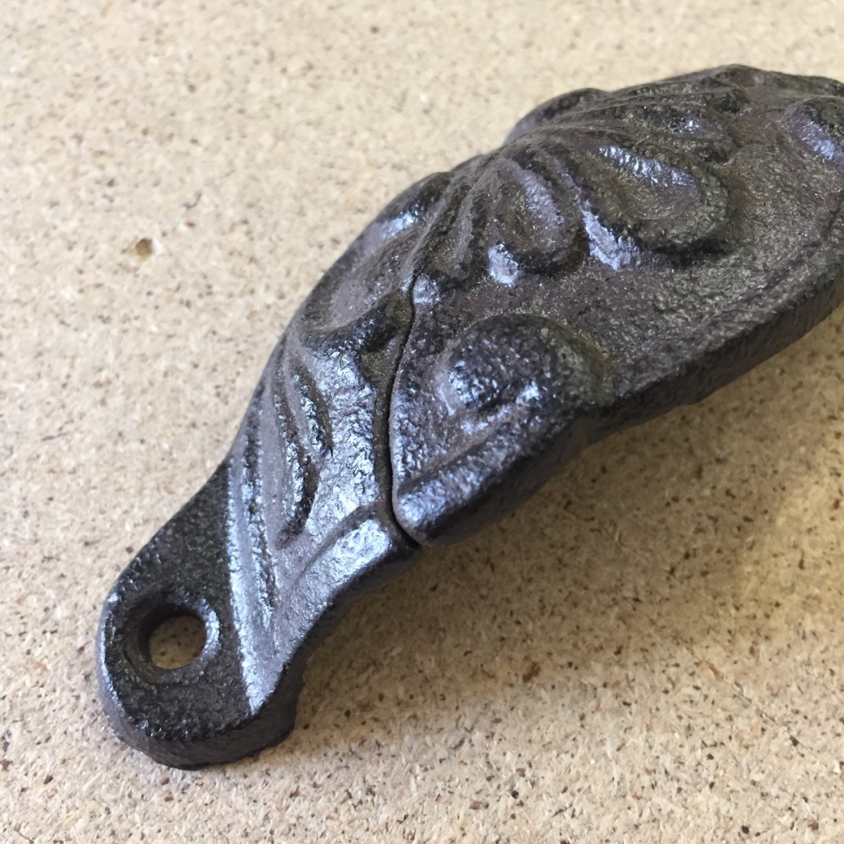 Úchytka na nábytok v tvare zdobeného vrecka je vyradená z dôvodu kazu na materiáli úchytky viď foto 2 až 5.