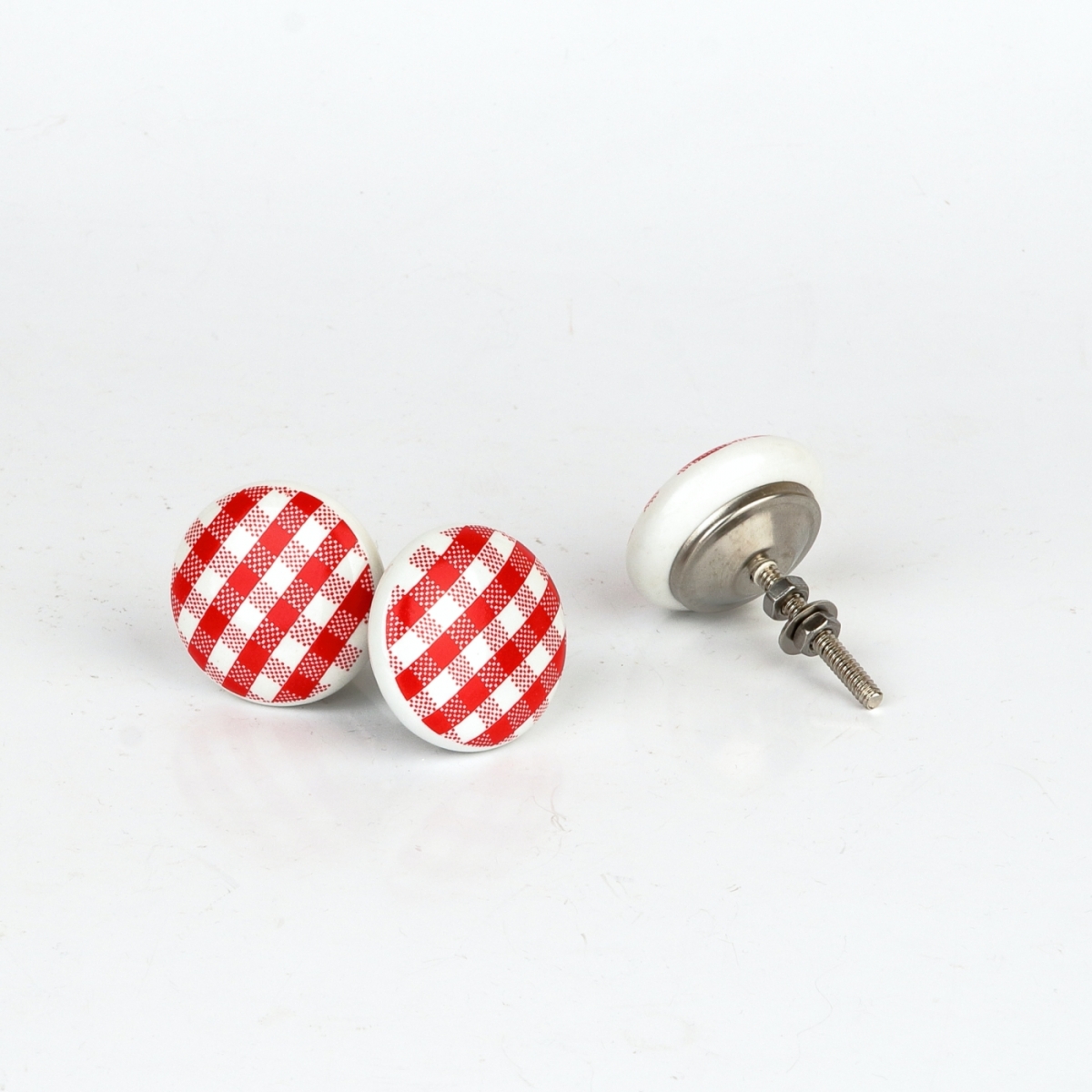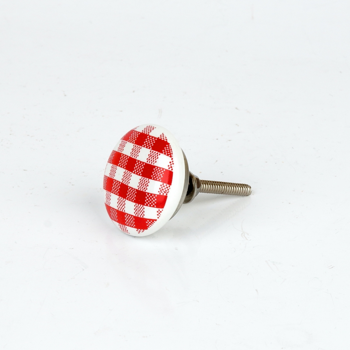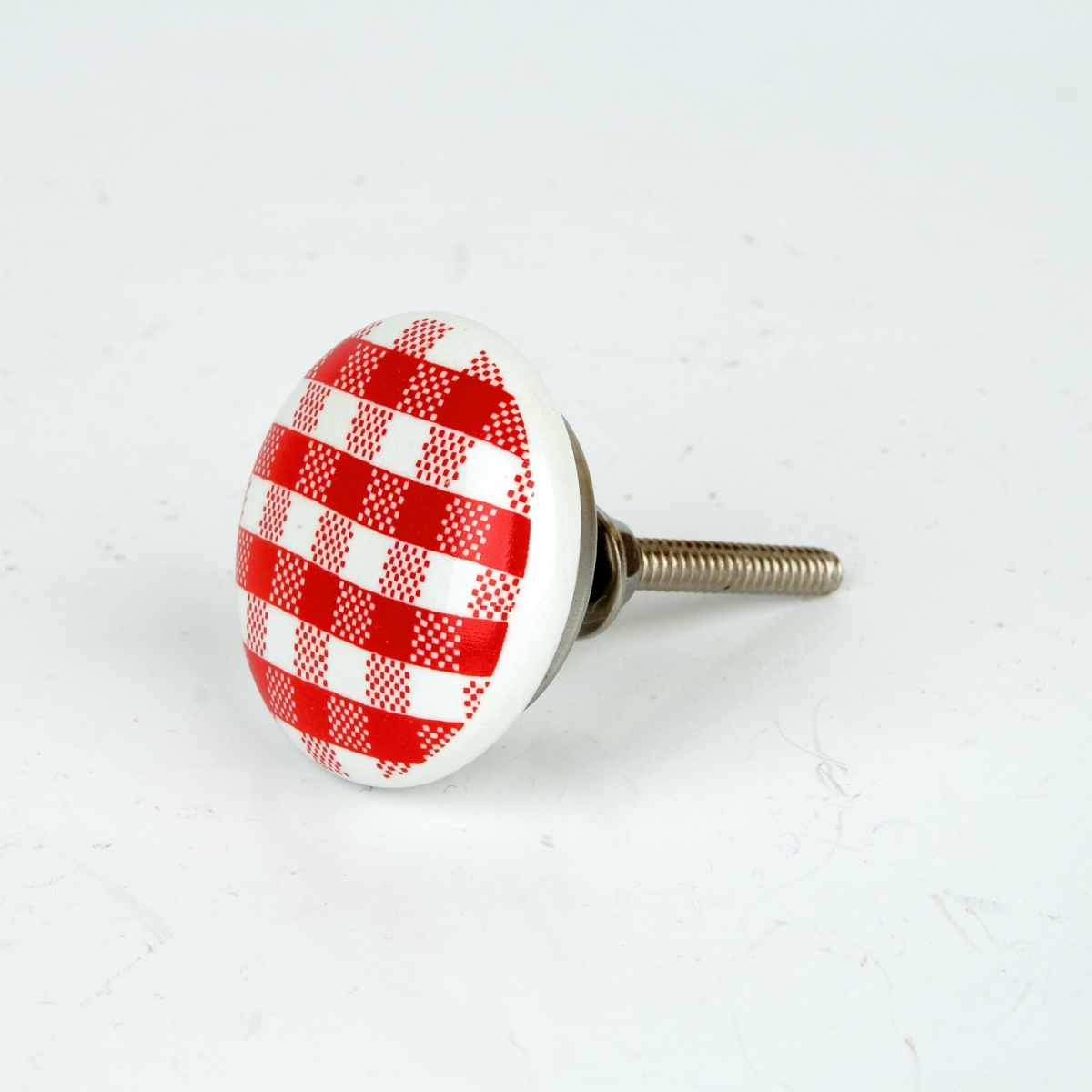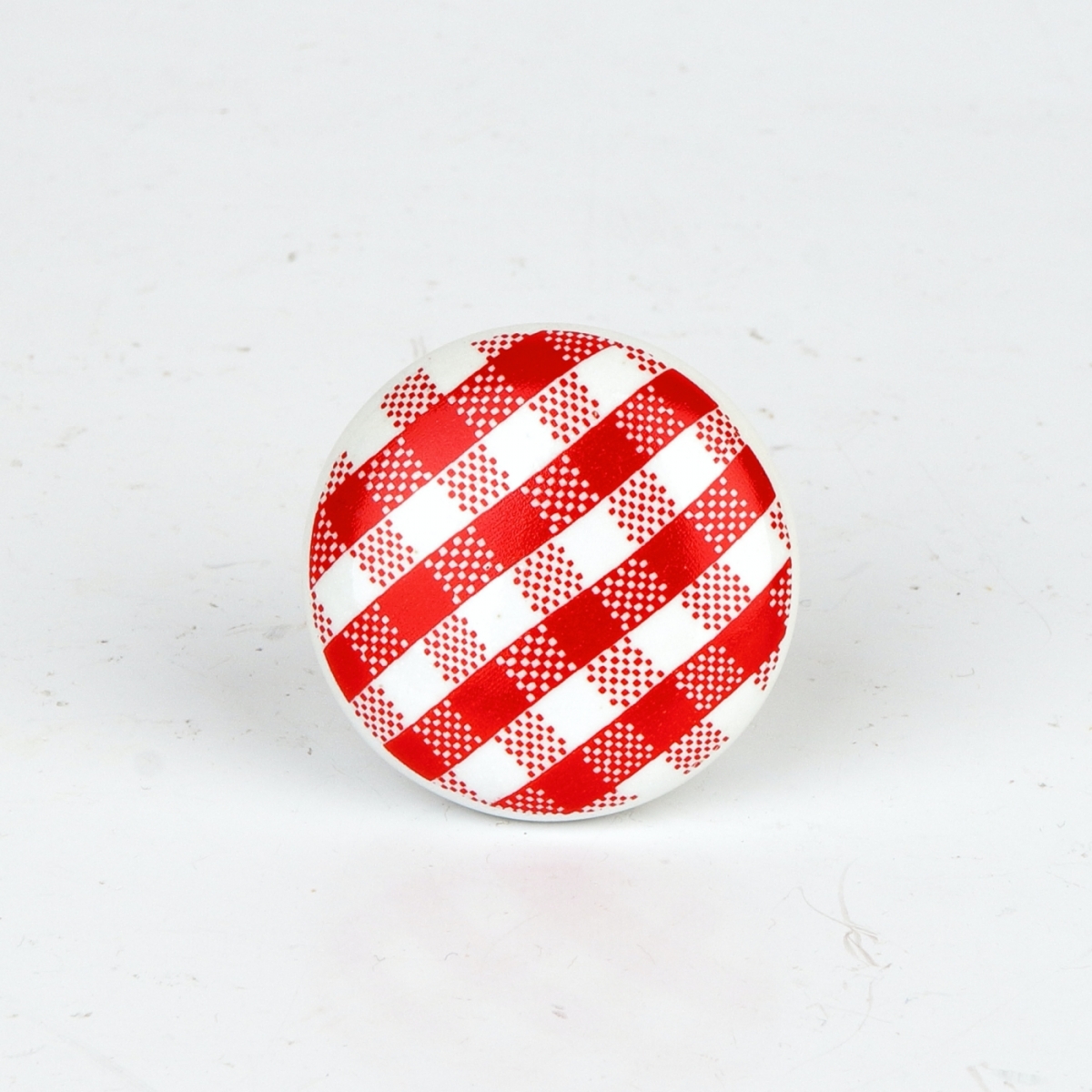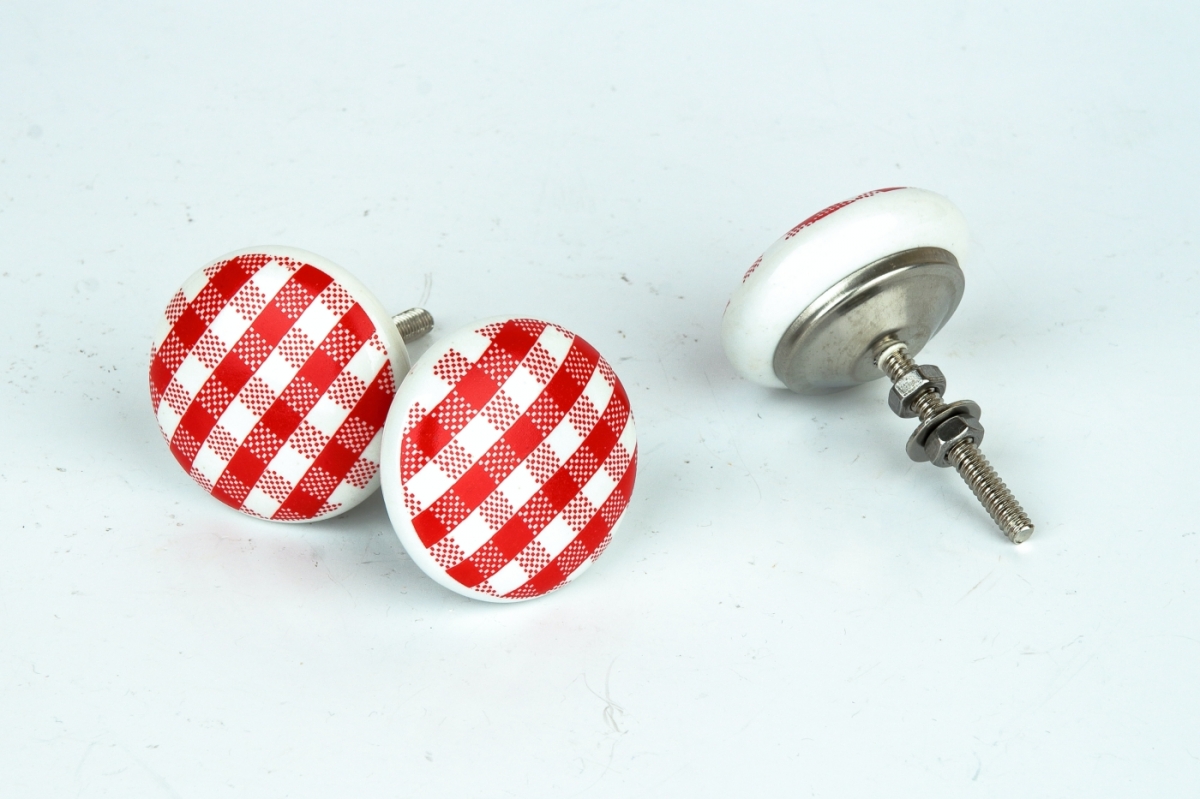 Úchytka na skriňu v retro štýle s károvaným vzorom. Úchytku je možné použiť aj na šuplíky kuchynskej linky na chalupe, alebo pri kúpeľňových skrinkách, pretože je keramická a nepodlieha vlhkosti.