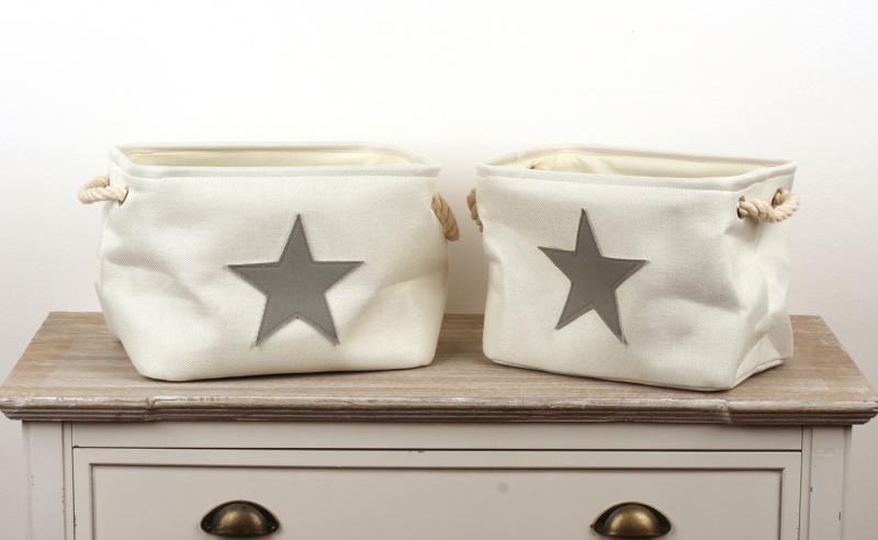 Koše majú smotanovú farbu a na prednej strane šedú hviezdu. Vyriešte raz pre vždy ukladanie vecí štýlovo!