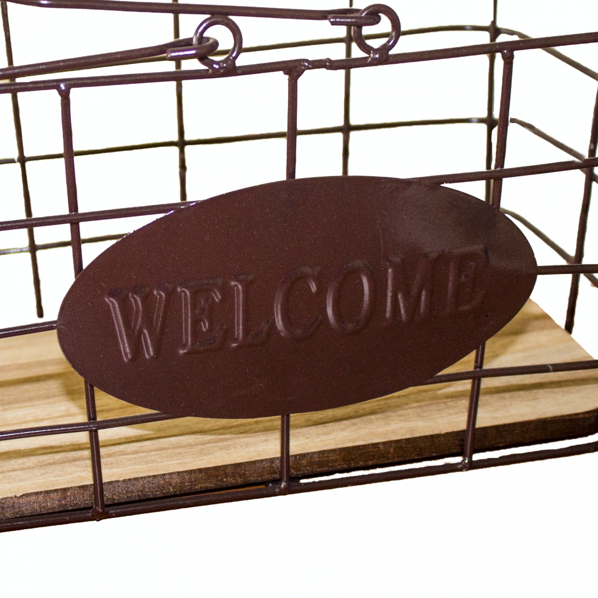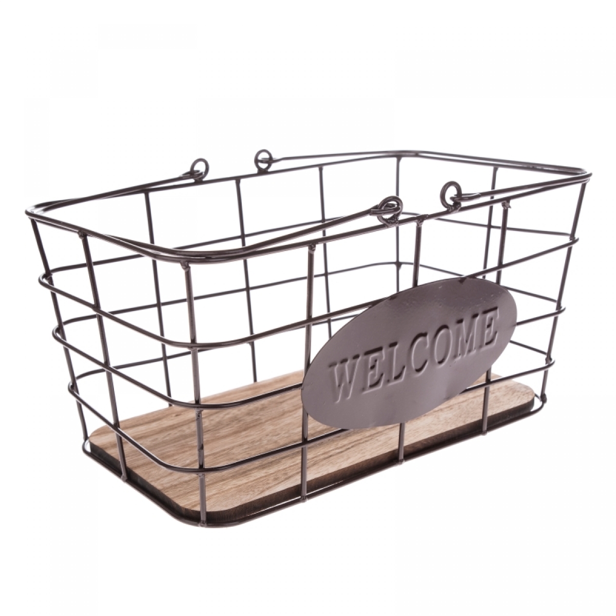 Úložný košík obdĺžnikového tvaru z kovu a dreva s nápisom Welcome (Vitajte)