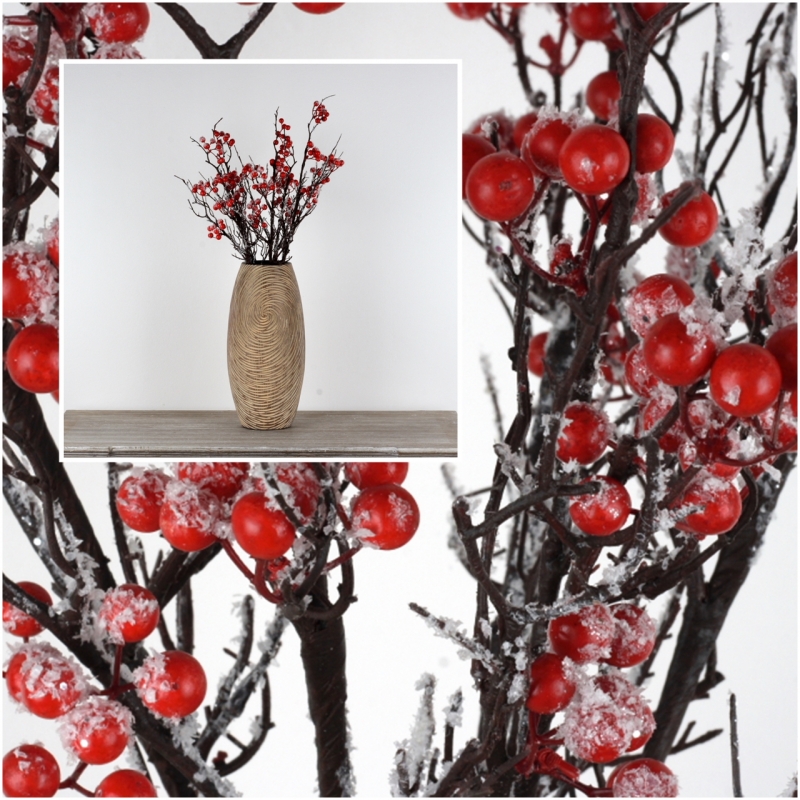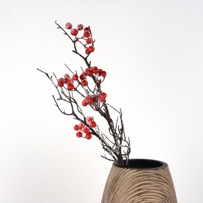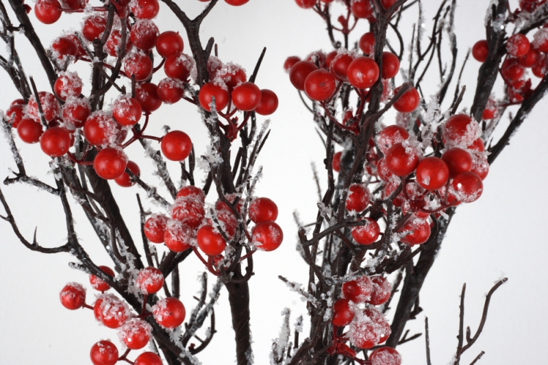 Vetva s červenými bobuľami a ľahko zasneženým vzhľadom môžete využiť aj do sezónnych aranžmá.