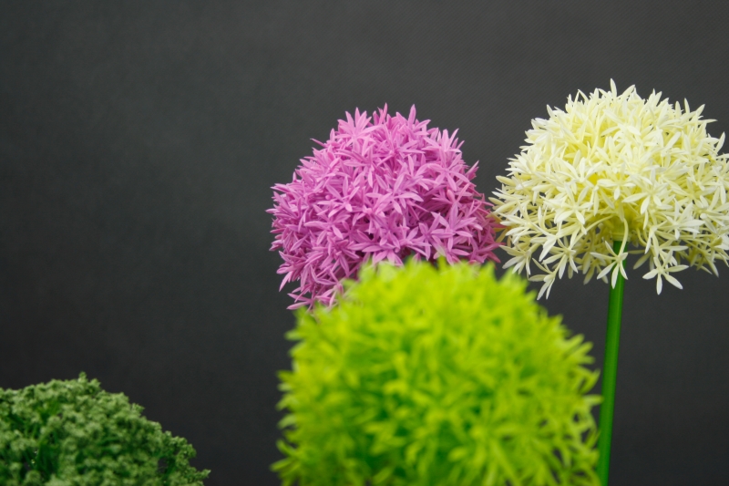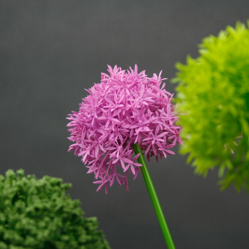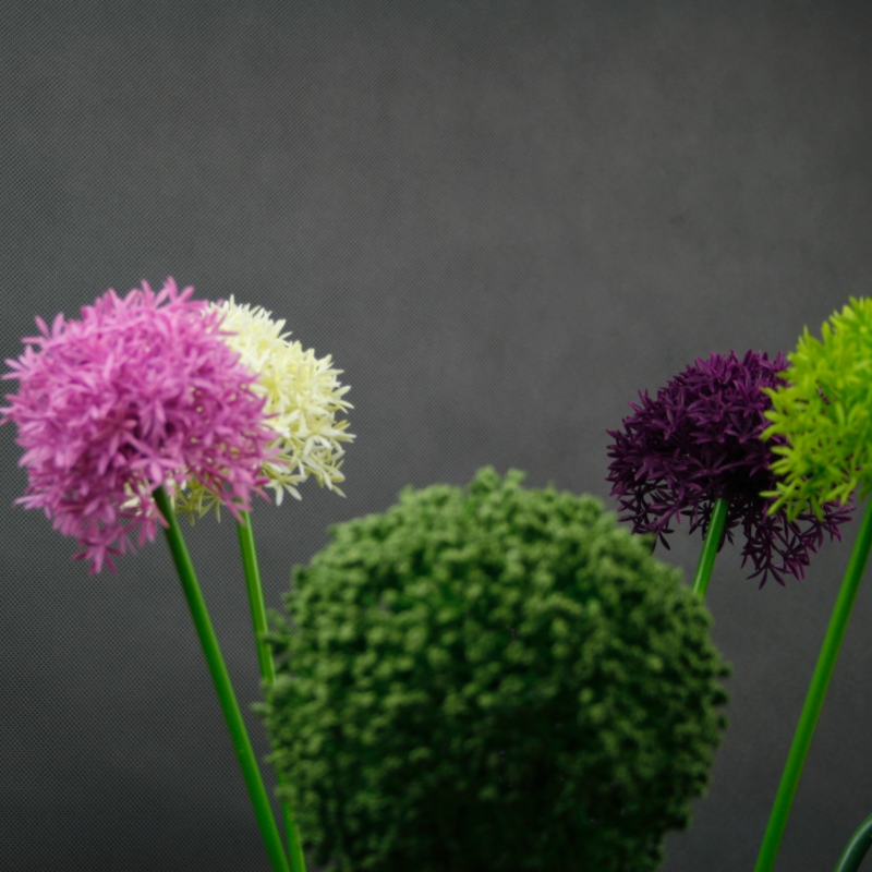 Kvetina je na nerozoznanie od živej rastliny. Môžete si vybrať z niekoľkých farebných kombinácií. Výber farieb závisí len a len na Vás. Okrasné cesnaky vyzerajú veľmi efektne v kombinácii viacerých farieb súčasne napr zelená-biela-fialová.