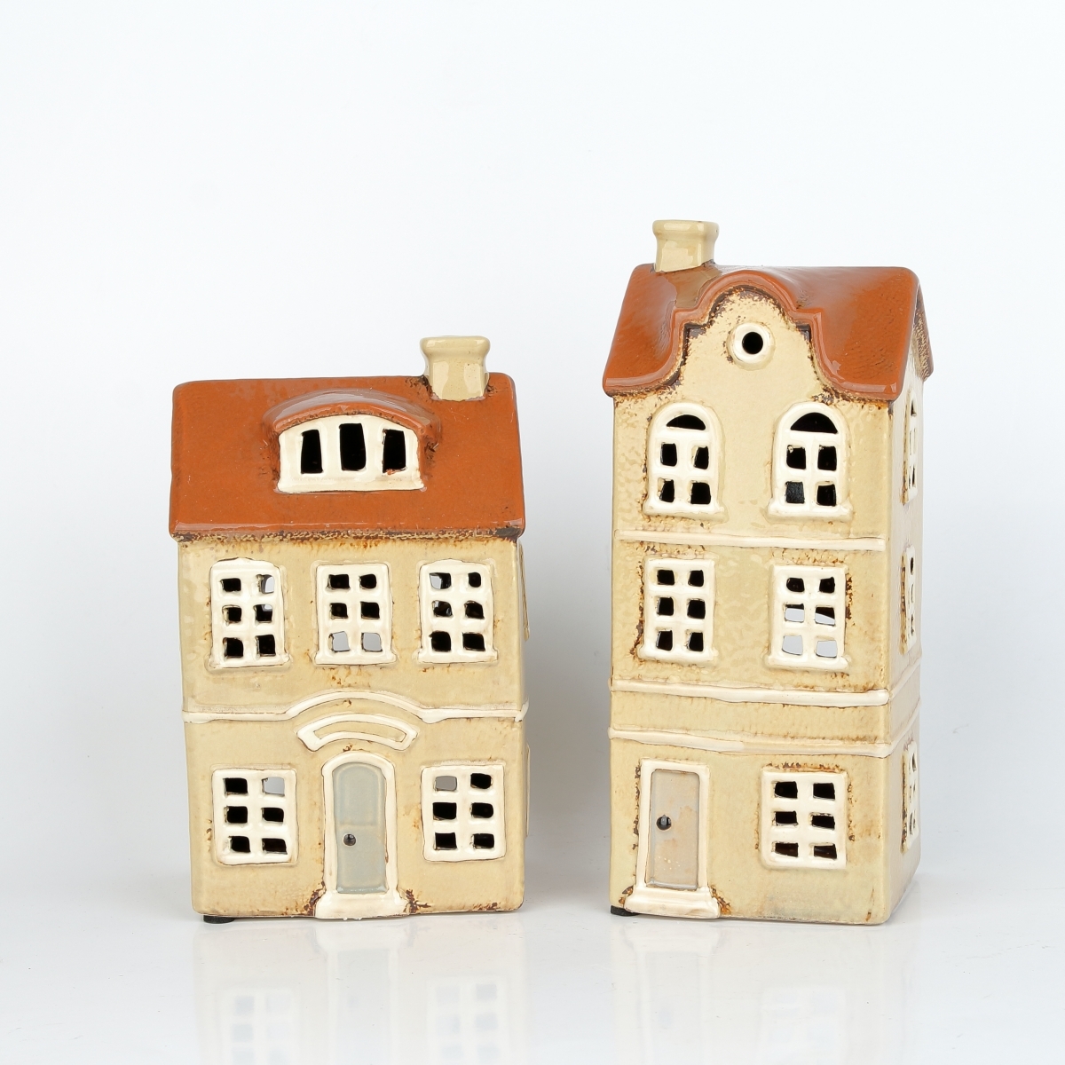 Vianočné dekorácie svietiace domčeky s otvorom na čajovú sviečku.