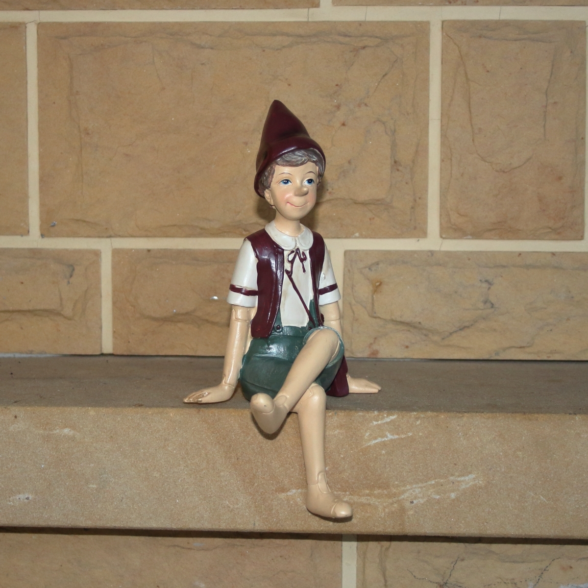 Vianočné dekorácie Pinocchio na lavičke, červená, 13x24x10cm