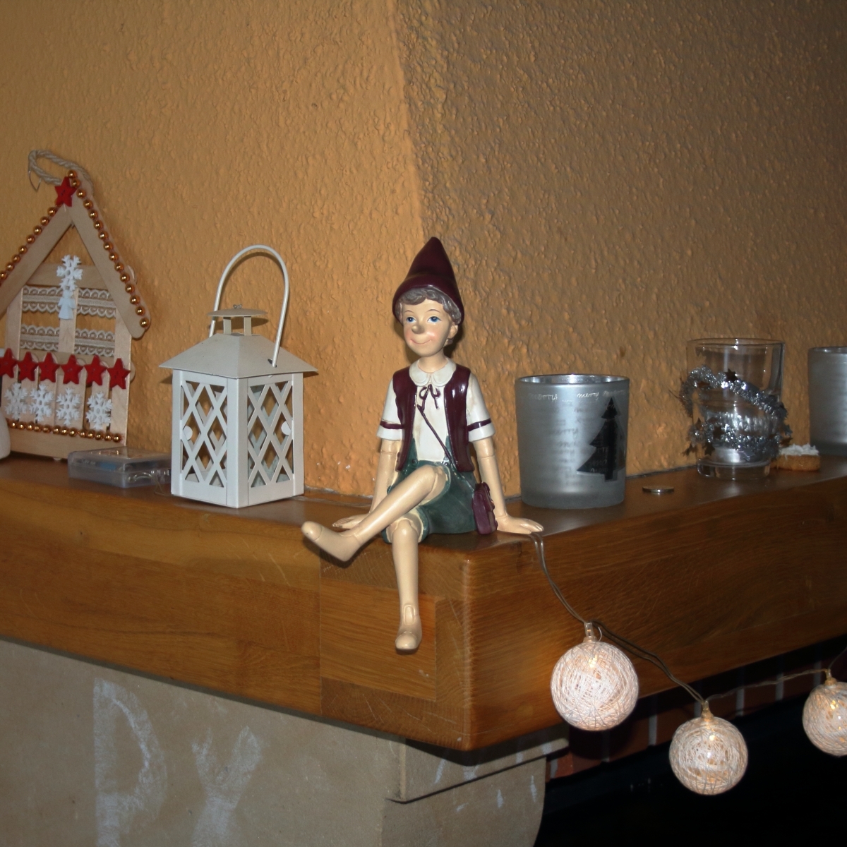 Vánoční dekorácie Pinocchio na lavičke 13x24x10cm