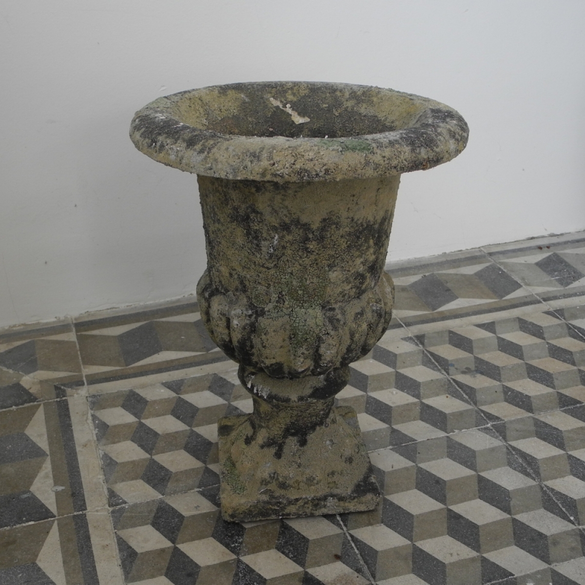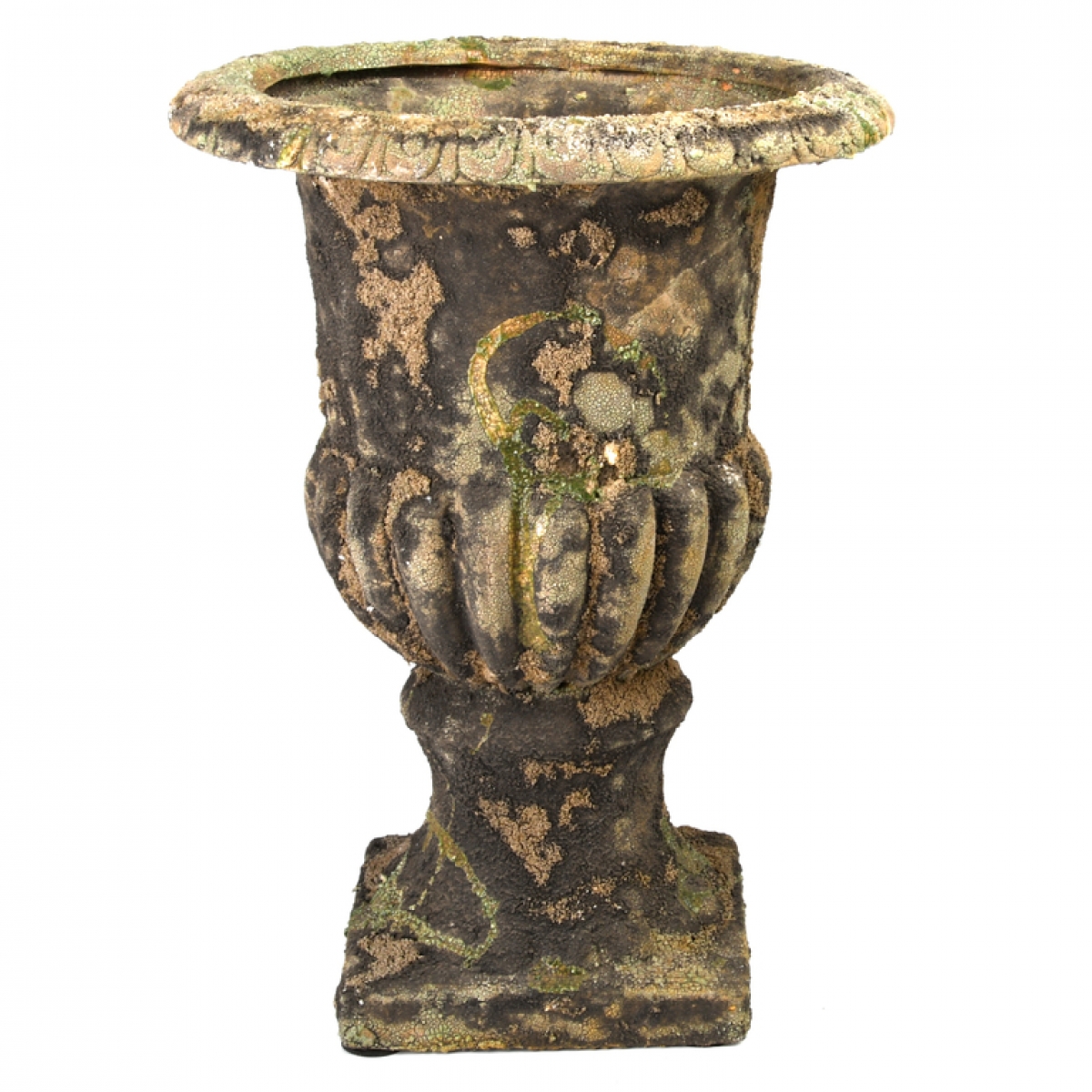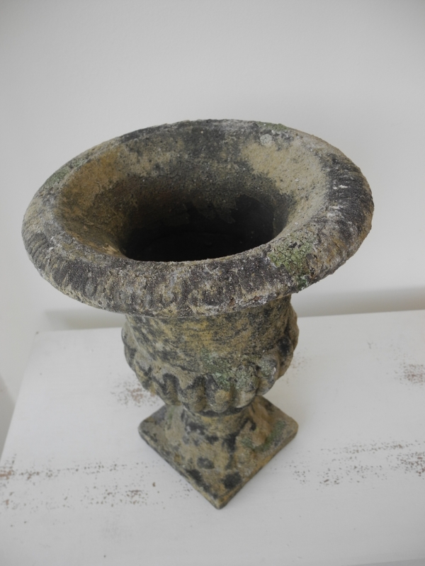 Vysoká francúzska váza vyrobená z Polyresin, je mrazuvzdorná, určená pre vonkajšie použitie.