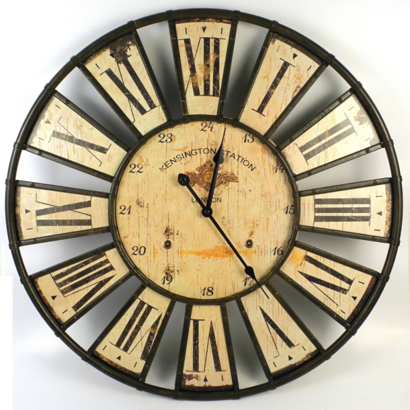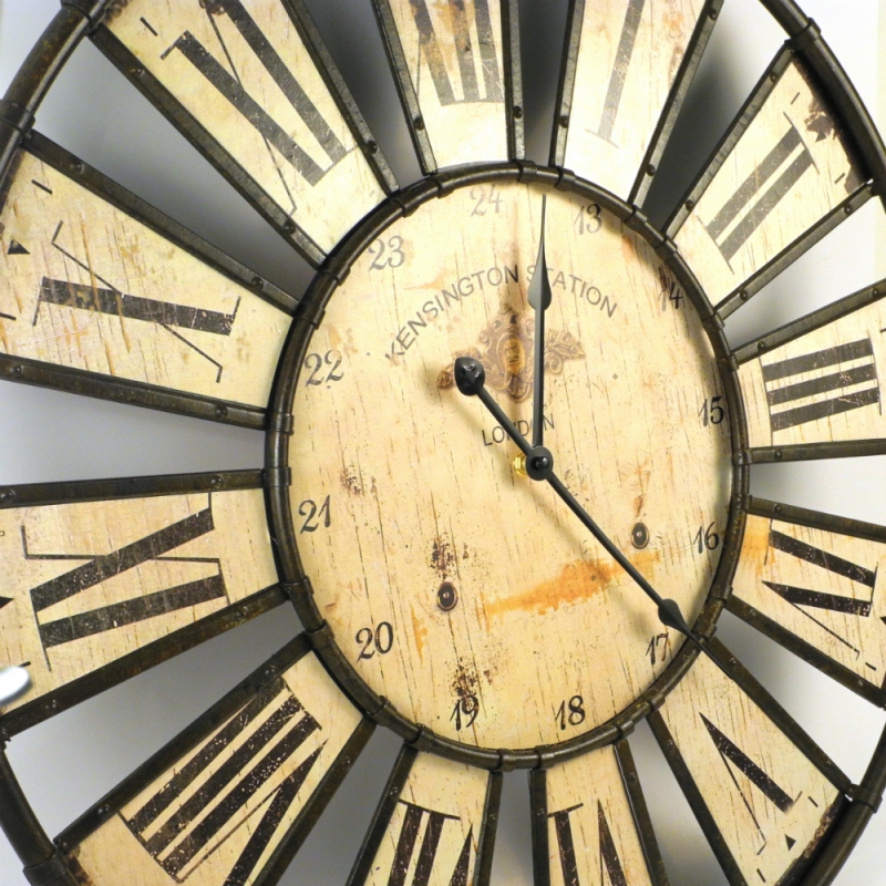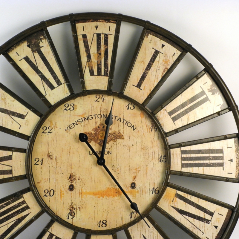 Velké nástěnné hodiny kovové 60cm Kensington station. Retro doplněk do stylového interiéru, nebo pro venkovní umístění například pod zastřešenou pergolou.