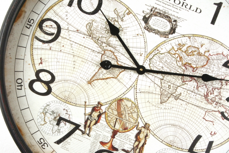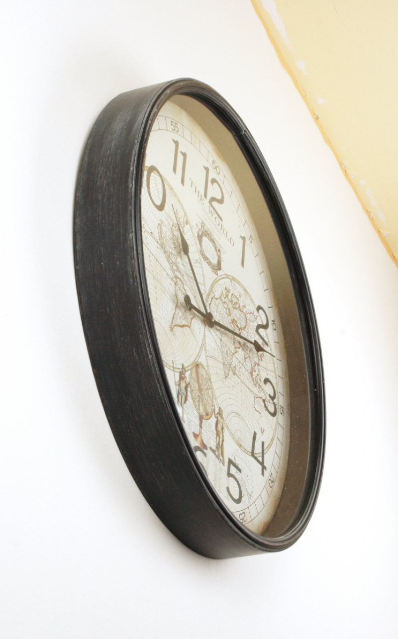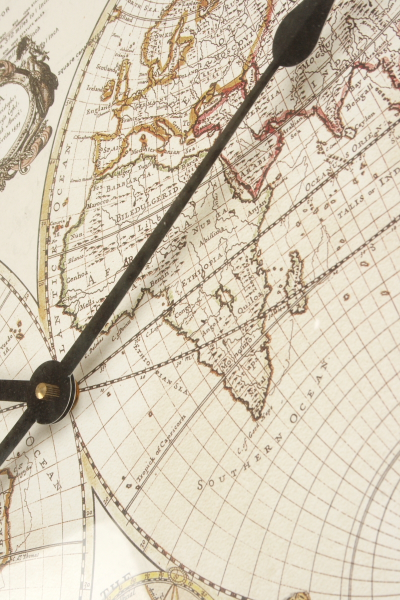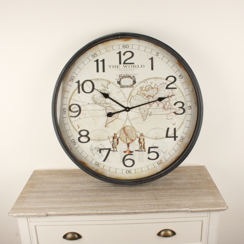 Veľké nástenné hodiny The World 68cm s ciferníkom zdobeným mapou sveta.
