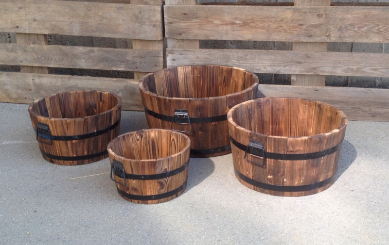 Toto vedro neslúži na vodu, ale ako okrasný obal na kvetináč do domu, na záhradu či terasu. Drevený kýbel s krásnou kresbou dreva je doplnený o kovové doplnky.