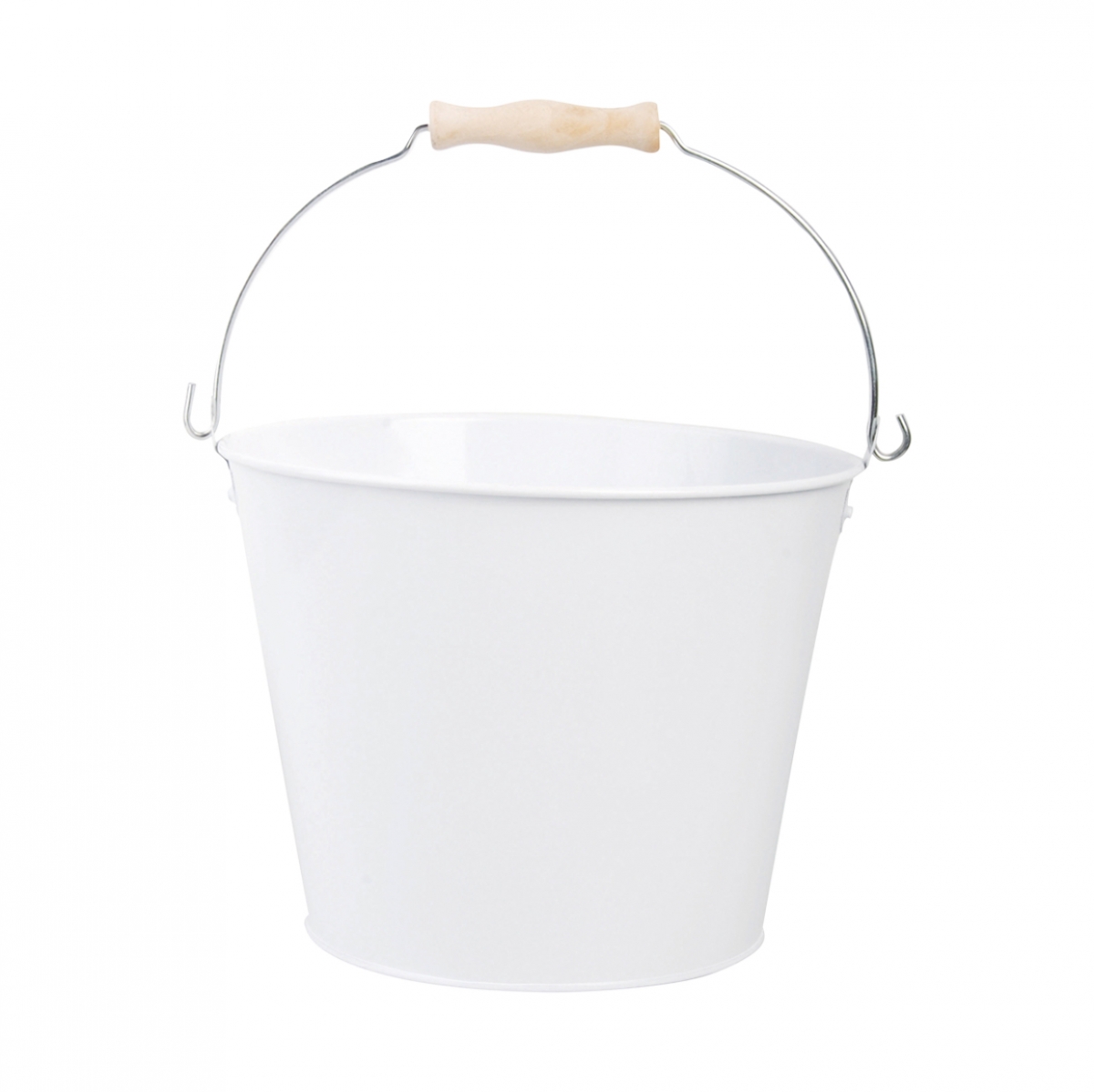 Vedro zinkový v bielom farebnom prevedení s dreveným úchopom pre ľahkú manipuláciu.