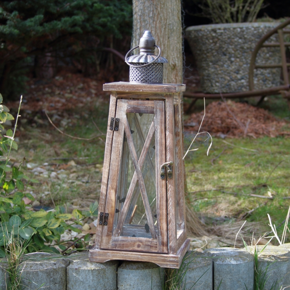 Veľká drevená lucerna rozžiari každú vašu miestnosť. Svetlo sviečky v lucerne vás dostane do pohody a vy si tak po dlhom dni budete môcť plne odpočinúť. Veľká drevená lucerna so tiež bude skvele vynímať na záhrade alebo terase.