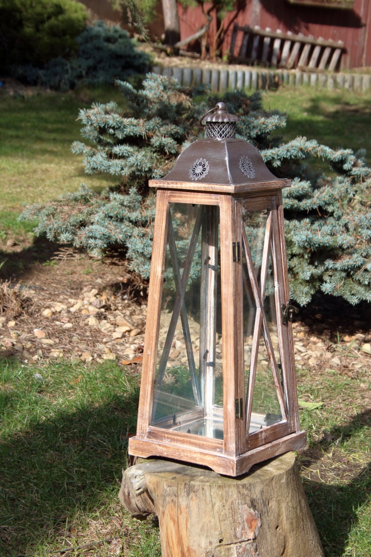 Veľká drevená lucerna s výškou 67 cm.