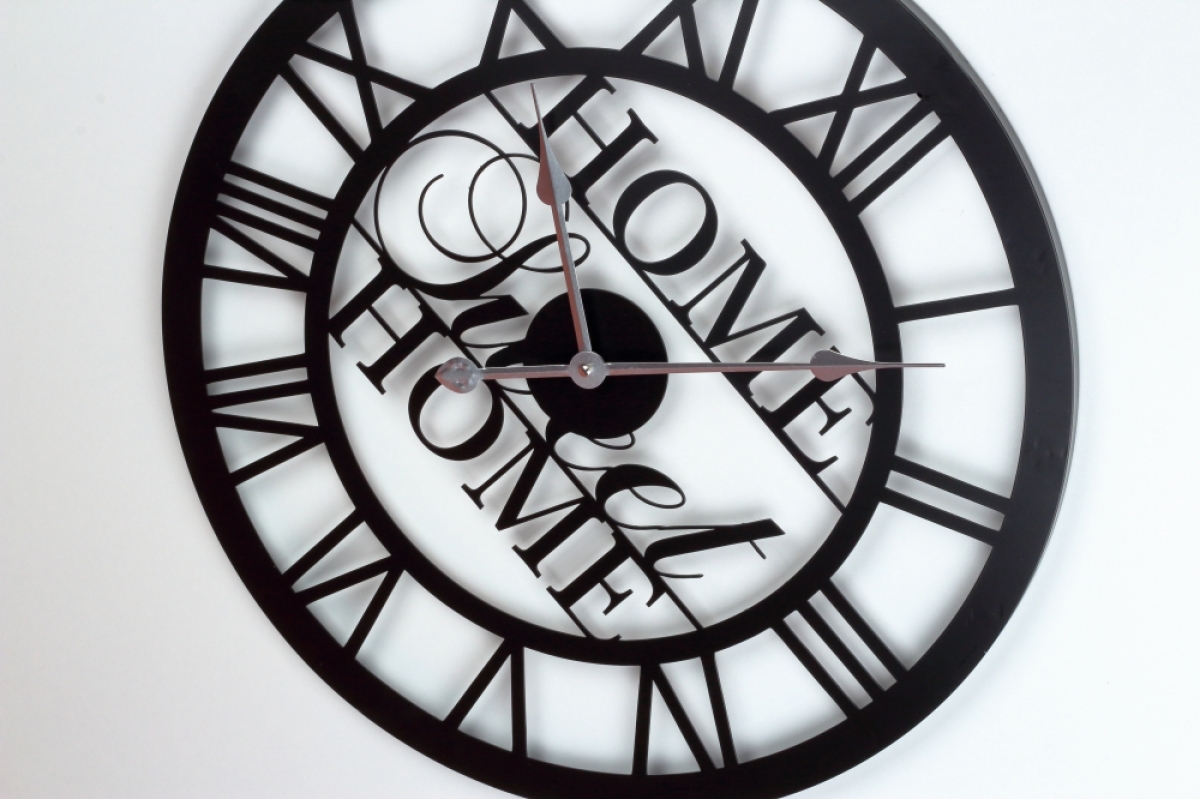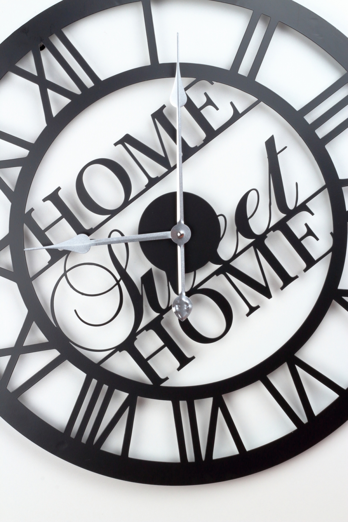 Veľké nástenné hodiny kovové Home sweet home 60cm ako funkčné a dizajnový doplnok interiéru. Originálne celokovové hodiny v jednoduchom čiernom prevedení sú vhodné do každého priestoru.
