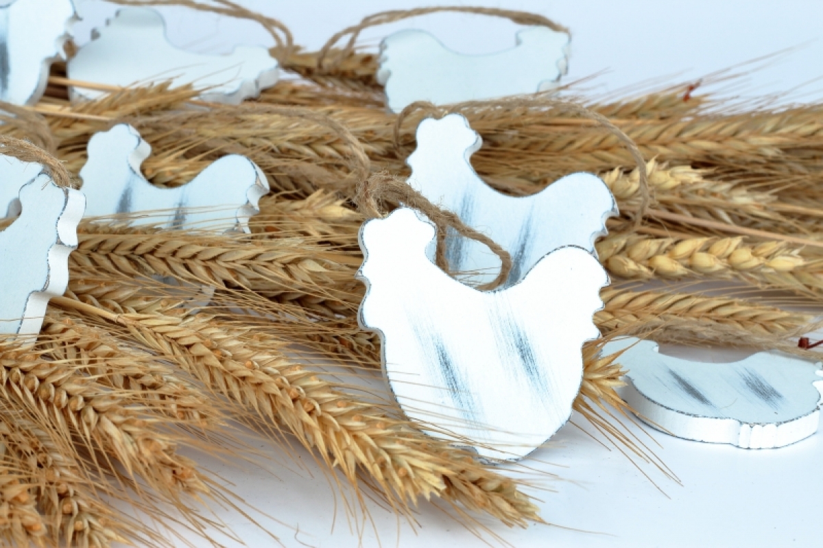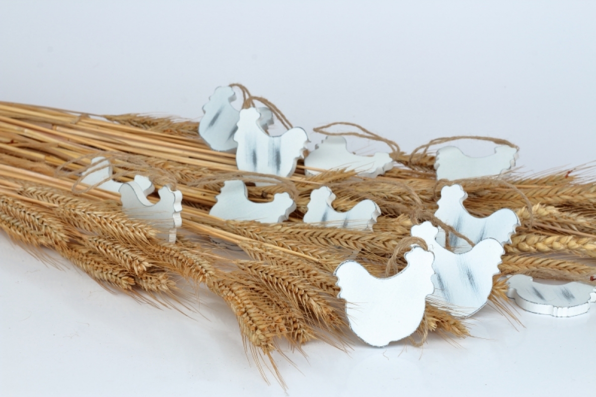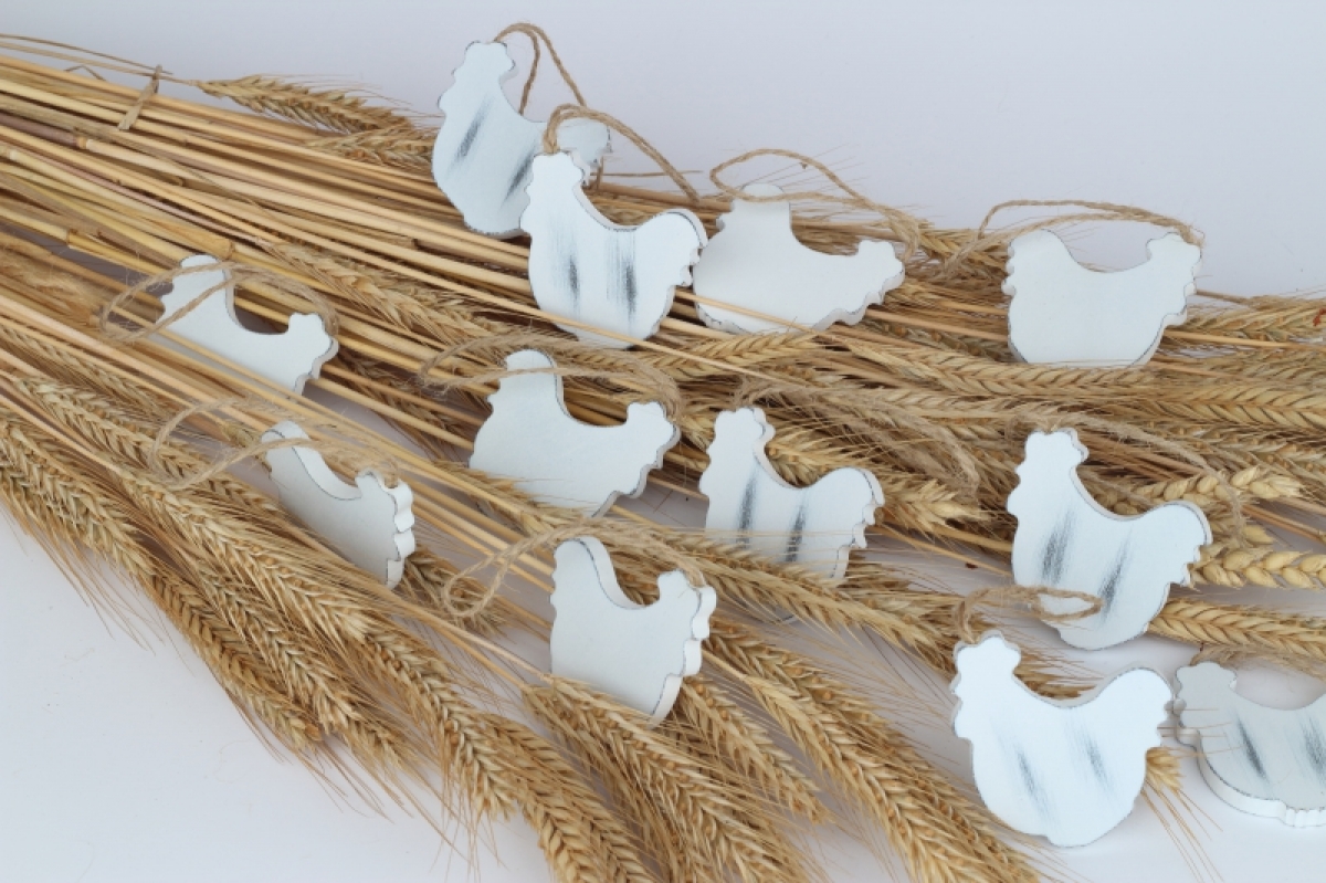 Veľkonočné dekorácie závesný kohút 12ks k ozdobenie vŕbových vetvičiek vo váze, vencov alebo jarného aranžmán v kvetináčoch.