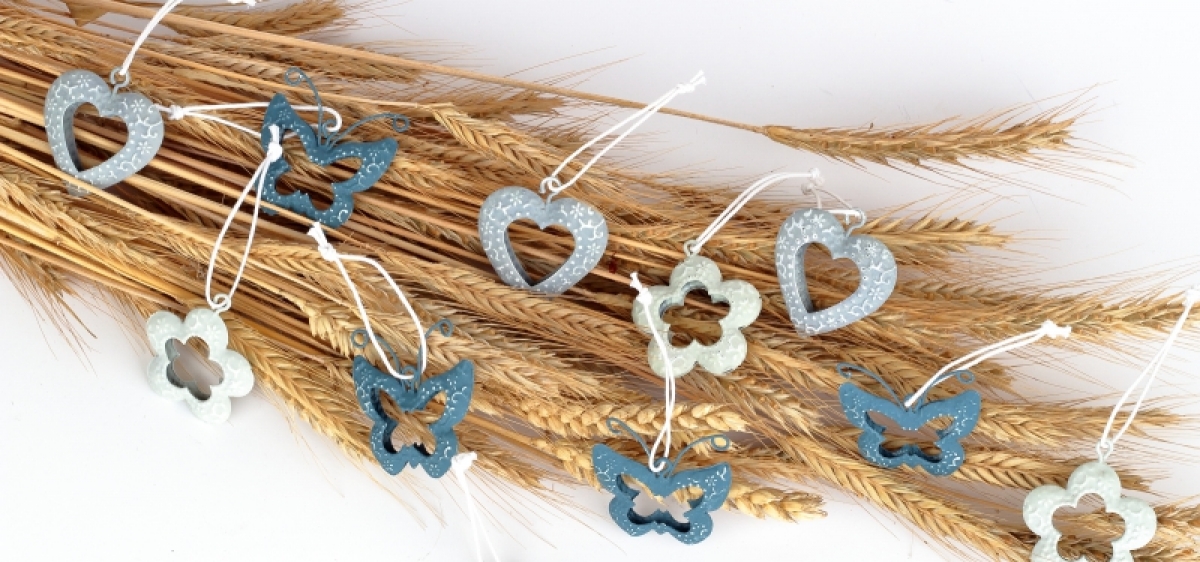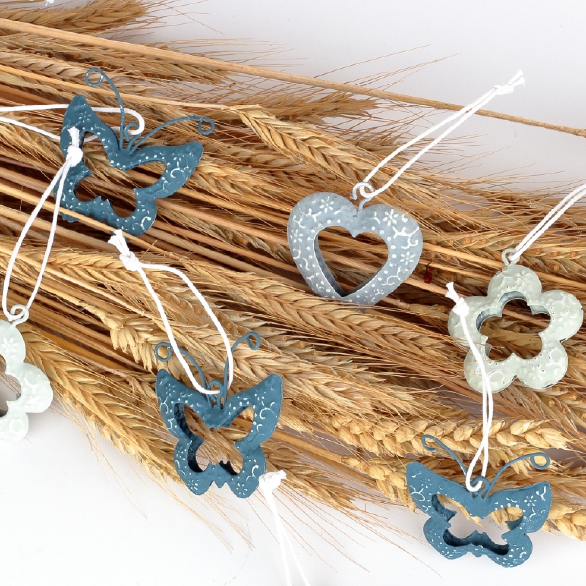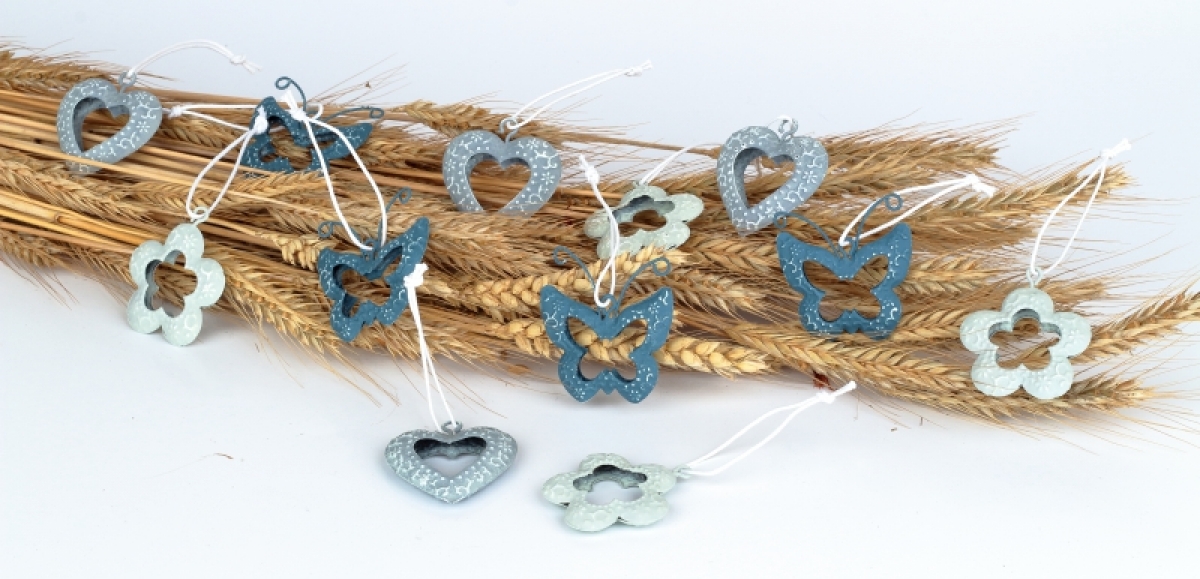 Veľkonočné závesné dekorácie kovové sivé 12ks k ozdobenie vŕbových vetvičiek vo váze, vencov alebo jarného aranžmán v kvetináčoch.