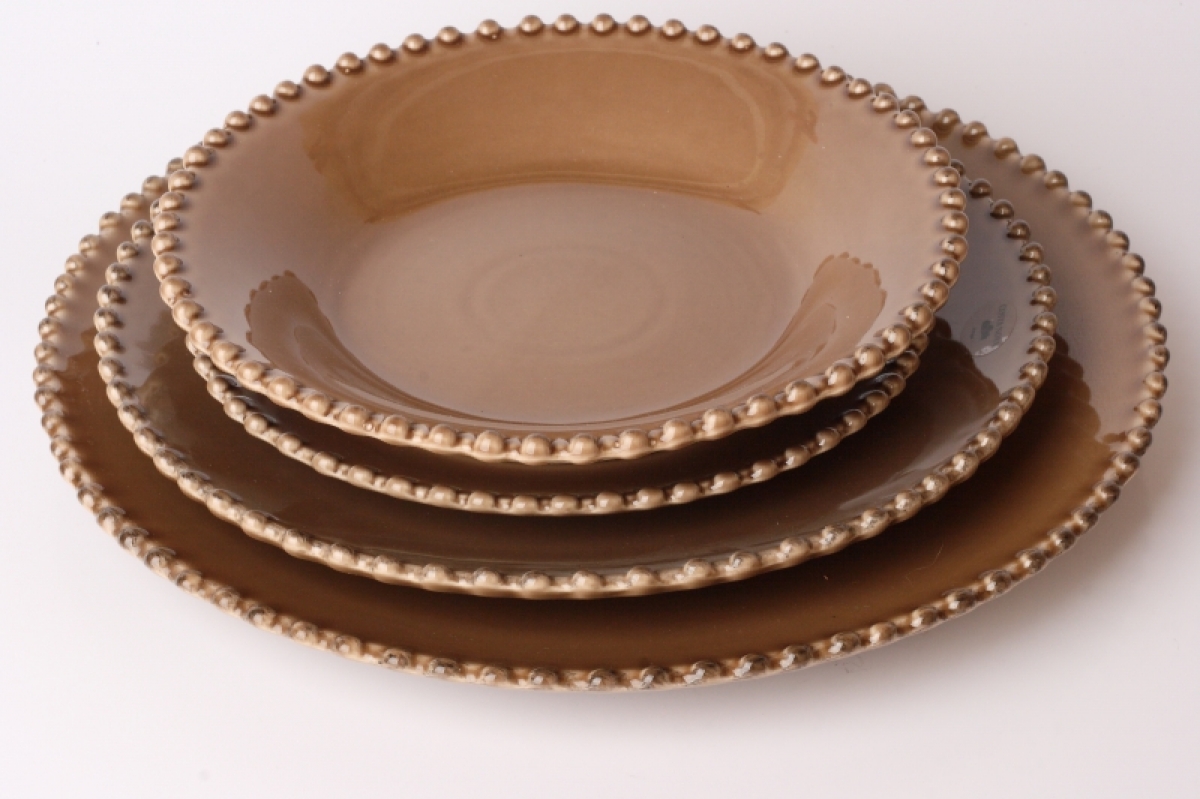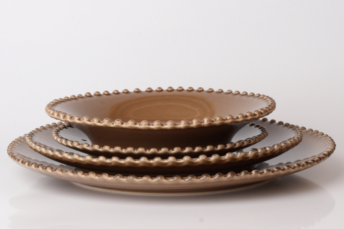 Zdobené okraje navyše naozaj pripomínajú šnúru perál. Luxusná kolekcia Pearl je vyrobená z vysoko kvalitnej keramiky s lesklou glazúrou v kávovej farbe.