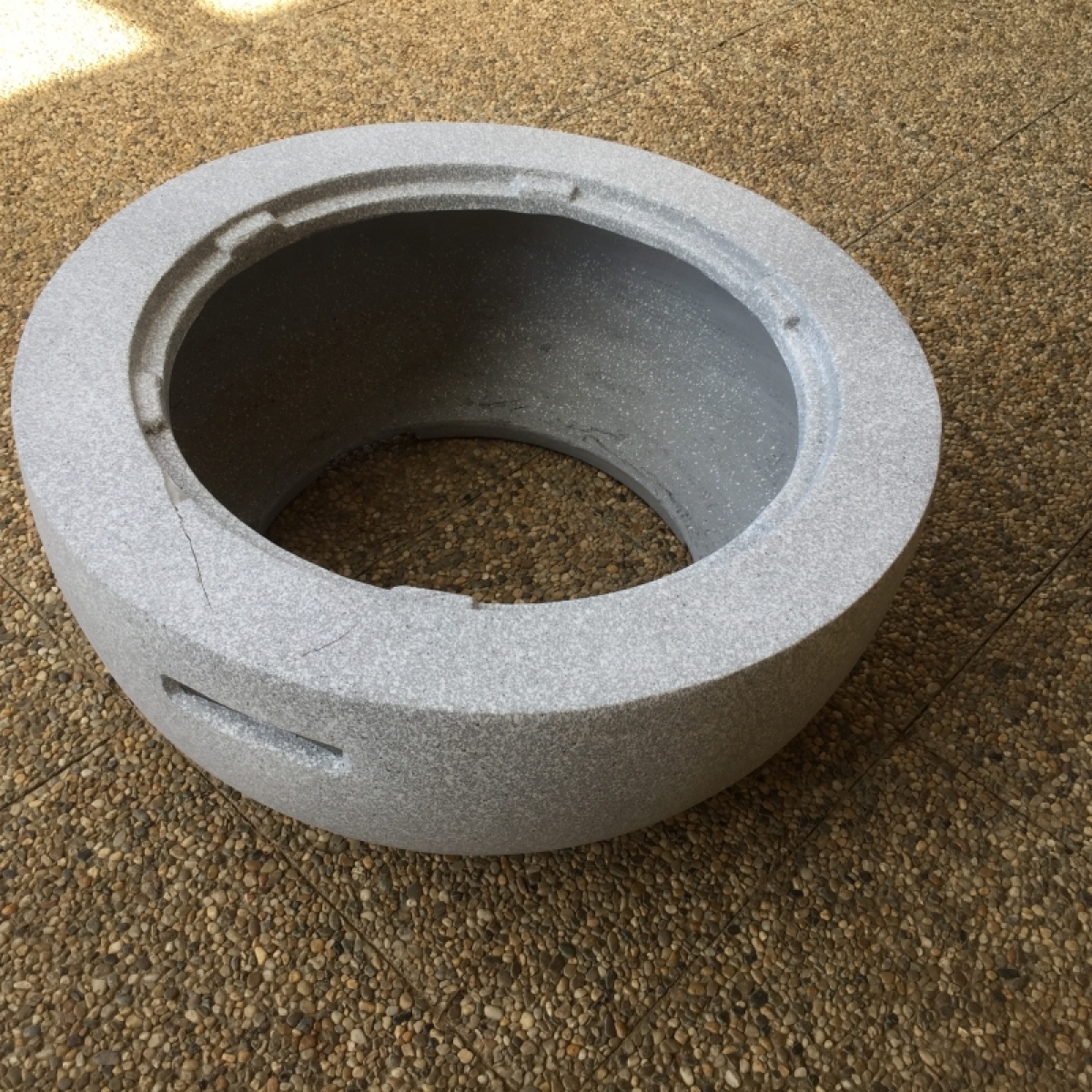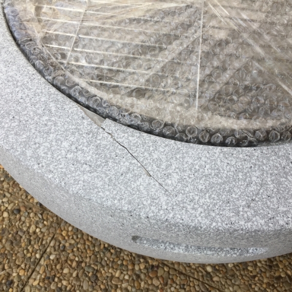 Venkovní ohniště bylo vyřazeno z důvodu poškození pláště ohniště.  Prasklina na povrchu ohniště nebrání řádnému užívání. Opravitelné kamnářským tmelem.