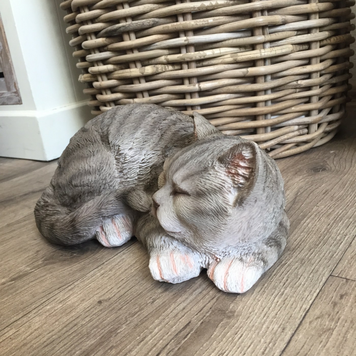 Vonkajšia socha spiaca sivé mačiatko 29cm